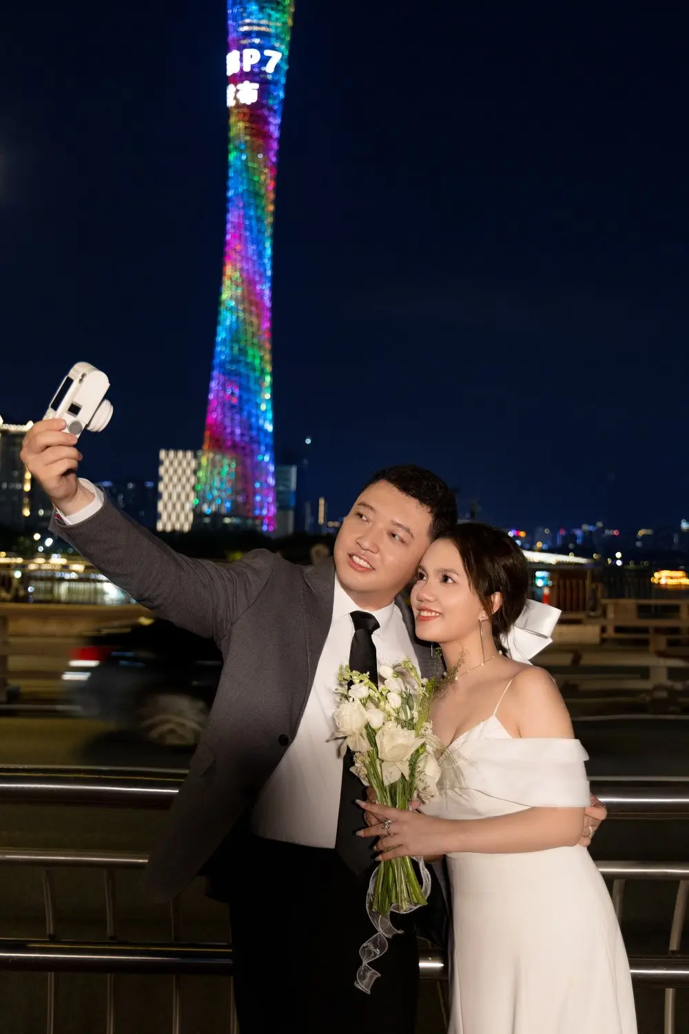 回想起拍婚纱照的时候,我们去到了广州塔。当时广州塔上正展示着小鹏新P7的发布信息,拍摄空隙还看了发布会。灯光璀璨的夜晚,新P7的身影在夜色中显得格外耀眼。那一刻,它就像一颗星星,在我的心里种下了一颗种子。我和爱人站在那里,看着那炫酷的画面,心中满是对新车的憧憬。