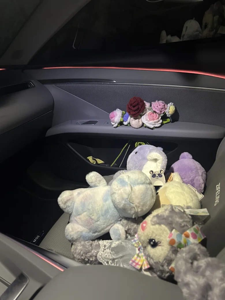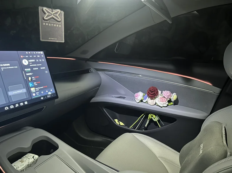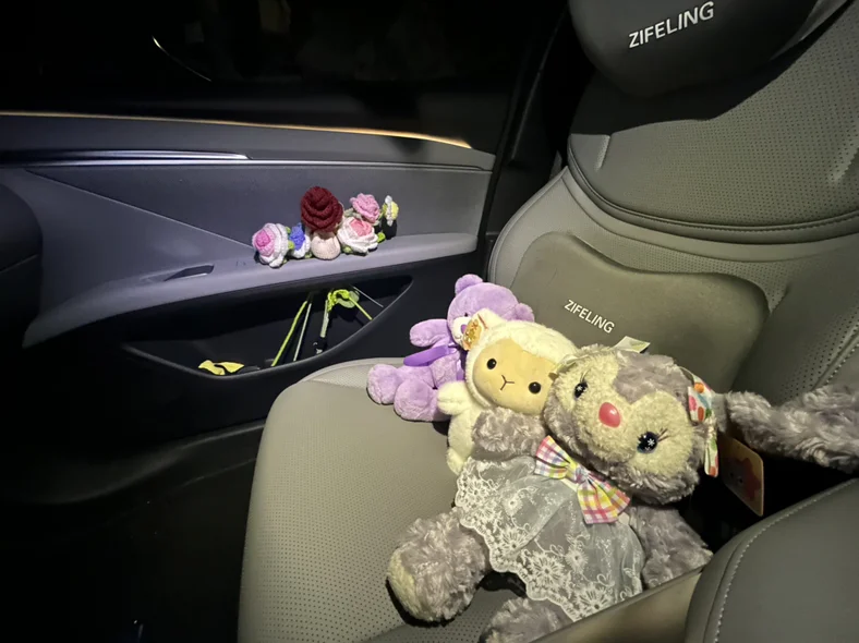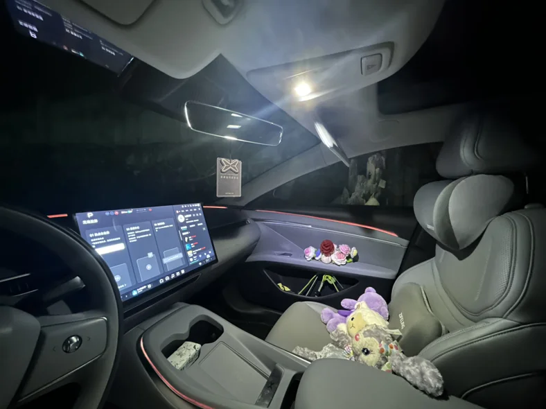 我的小鹏MONA 03的副驾,从不是冰冷的座位,而是装满故事的移动小窝。浅灰内饰温柔裹着座椅,副驾上坐着我的娃娃,多晚下班他们都陪着我,氛围灯便随我爱的歌律动。用朋友送的花朵装饰车门,点亮了沉闷。