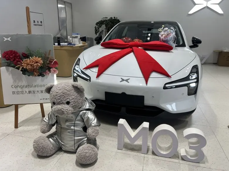 签到后工作人员先递上了首任车主礼——可爱的太空熊玩偶、定制U盘还有原厂脚垫,瞬间被这份贴心戳中。接着交付专员陪我仔细验车,我的MONA 03是清爽的白色,绕车检查车漆没有划痕,车门缝隙均匀,轮胎生产日期也符合要求;坐进车内,测试了座椅调节、车窗升降,呼叫“小P”语音助手,响应又快又准,屏幕也没有任何坏点。