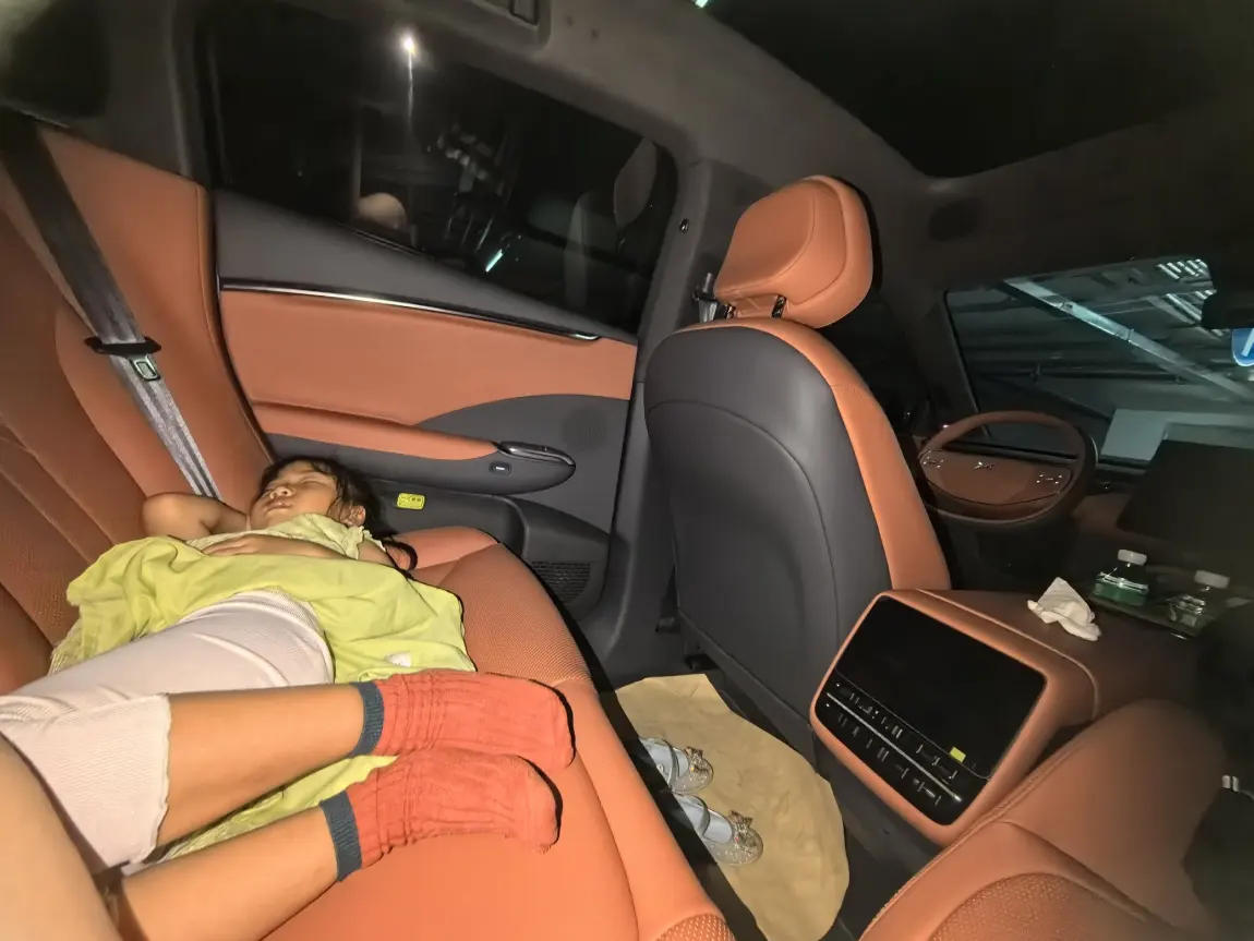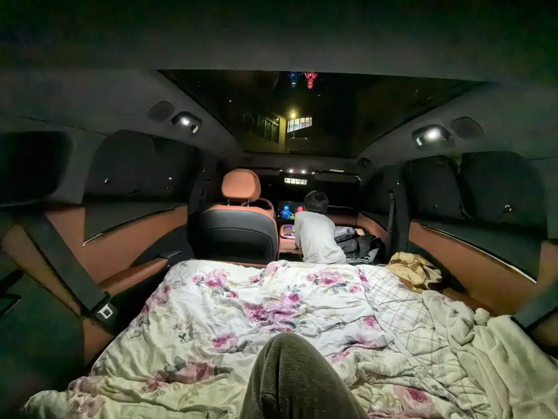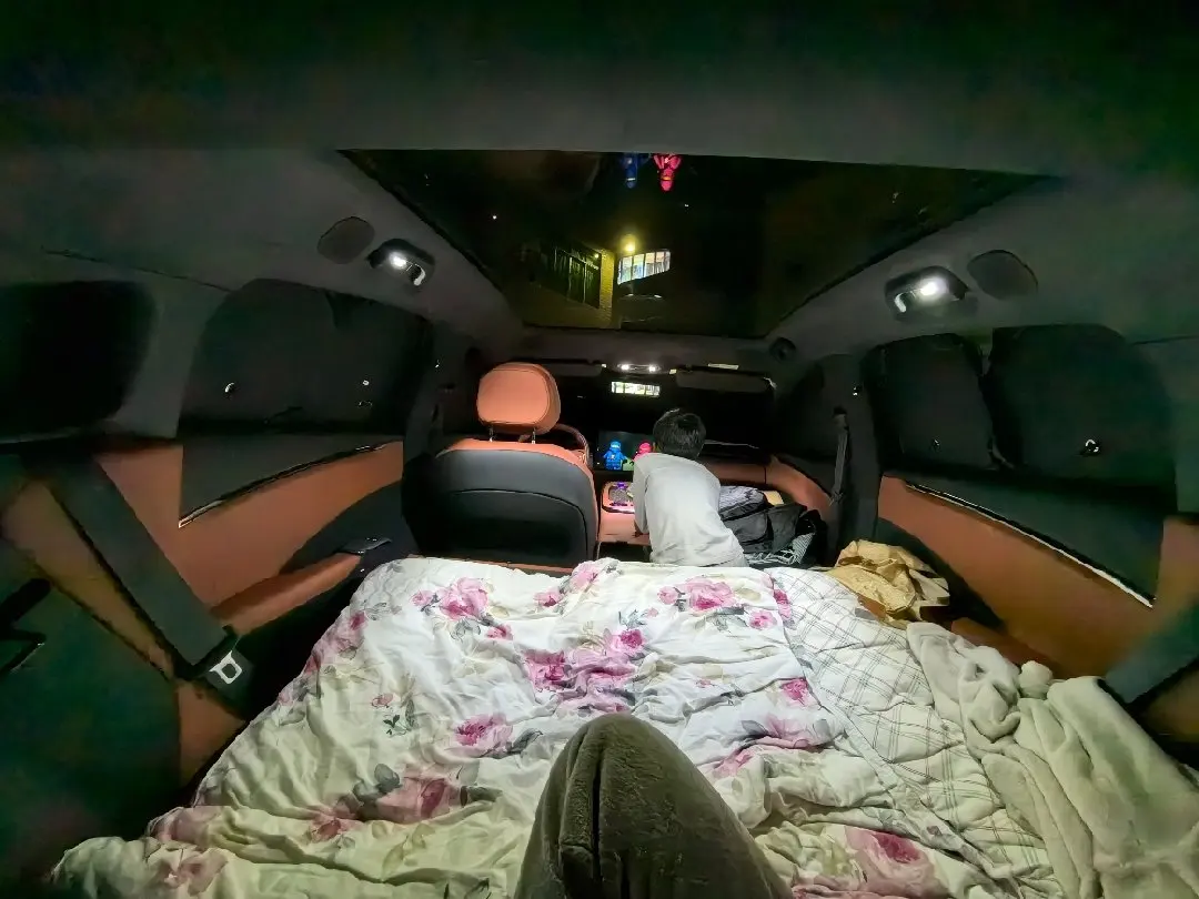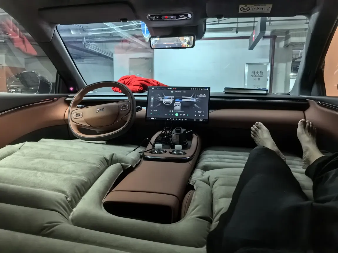 为了进一步提升体验,我特意从小鹏商城入手了充气床垫。实测下来,虽然不能和家里的大床相比,但支撑平整,小憩一会儿绰绰有余,甚至临时在车上过夜也问题不大。我们在地库就曾完整测试过,孩子睡得很安稳。