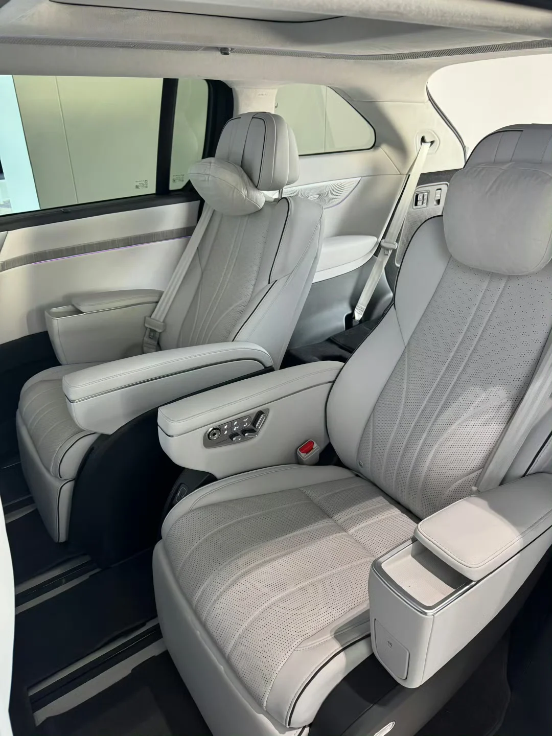 此外,第二排座椅中央通道加宽约2厘米,进出第三排更方便。小鹏X9增程版第二排座椅还支持一键前移,车侧直接进入第三排的通道也很宽。