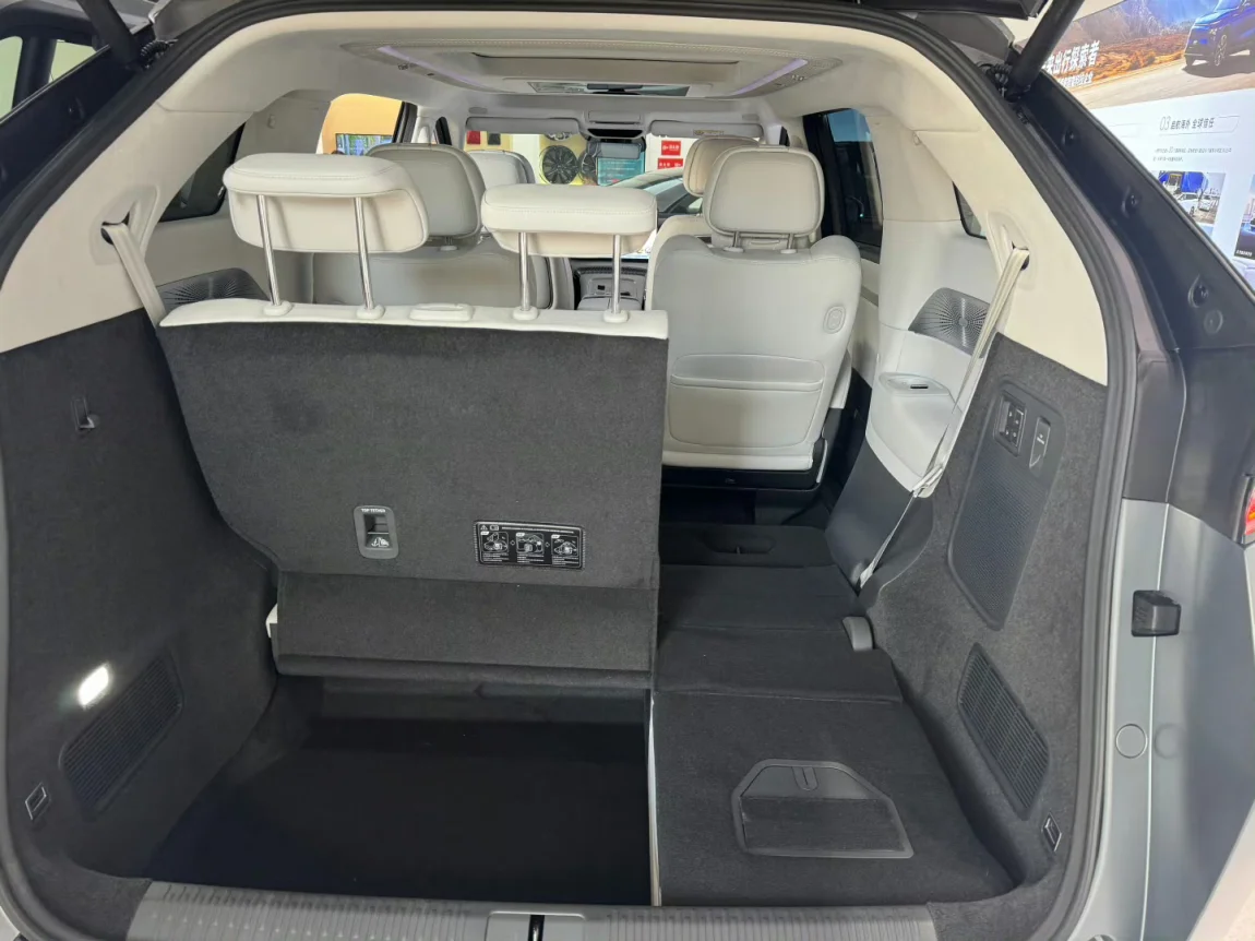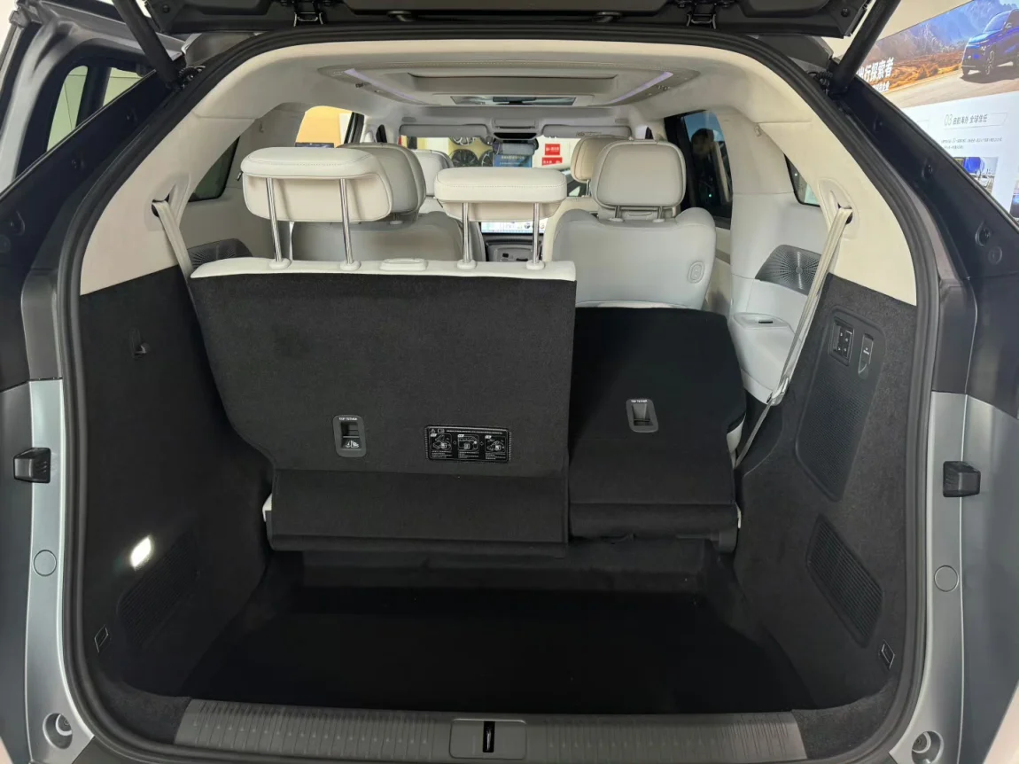 店内销售告知,除了车长数字的小幅变化,小鹏X9增程版的第三排空间相比纯电版略有优化提升。我个人实际体验,如果在一二三排的右侧均有175mm男士乘坐,以正常乘坐姿态,二排腿部空间两拳+,三排腿部空间一拳+,且三排横向空间充裕,脚窝也够高,可以轻松伸脚。