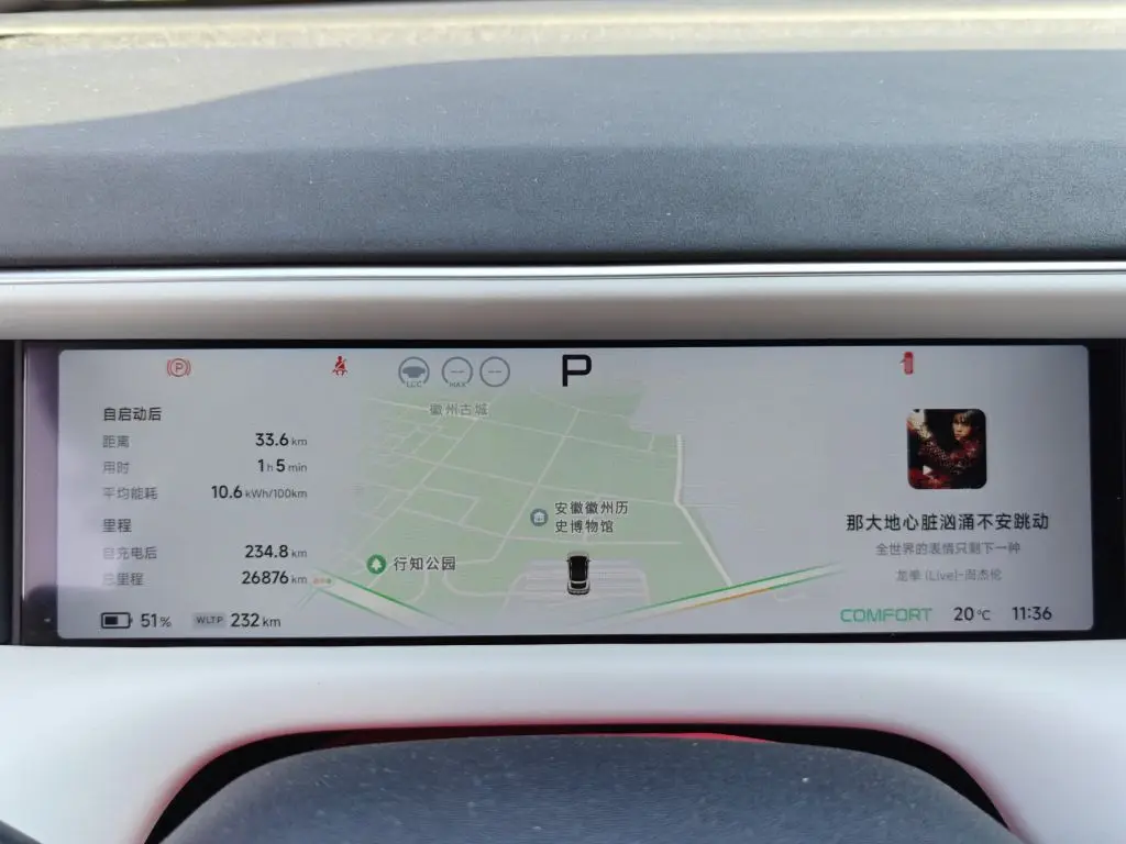 作为单电机版本,我的G6搭配20寸轮毂,抓地力表现出色。方向盘转向精准,窄路会车、连续弯道都能稳稳掌控,运动模式在山路和高速上手感扎实,舒适模式则让城市通勤格外轻松。