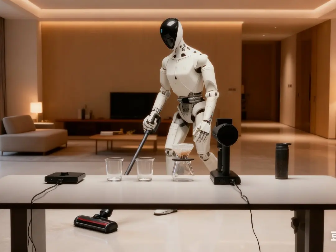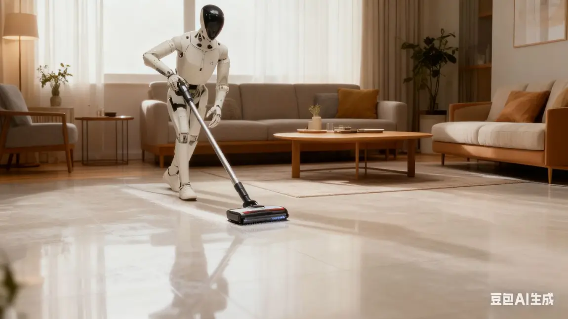 #小鹏Iron在身边# 阳光洒进整洁的客厅,小鹏Iron机器人正握着洗地机忙碌。它灵活穿梭在沙发与茶几间,滚刷轻柔贴合地面,水渍与碎屑被瞬间吸净。