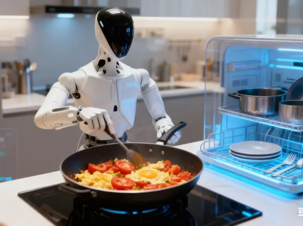 日常家务中,Iron是解放双手的“高效管家”。清洁时,其双目视觉与激光雷达组合能精准识别木地板、地毯等不同材质,遇到咖啡渍自动喷洒清洁液深度擦拭,再用热风烘干避免水渍残留,高处吊灯与沙发底的灰尘也能通过可伸缩机械臂轻松清除,语音指令“清洁客厅角落”即可启动最优路径规划。烹饪场景下,它能根据用户健康数据推荐低卡菜谱,自动完成食材取放、切配称重,甚至用仿真翻炒动作烹制番茄炒蛋,出锅前还会温柔询问“是否需要加葱花”,烹饪后同步完成锅具清洗与紫外线消毒,让厨房始终整洁无菌。垃圾分类更是省心,内置识别系统能精准区分各类垃圾并自动打包,满桶时及时提醒更换或预约回收。