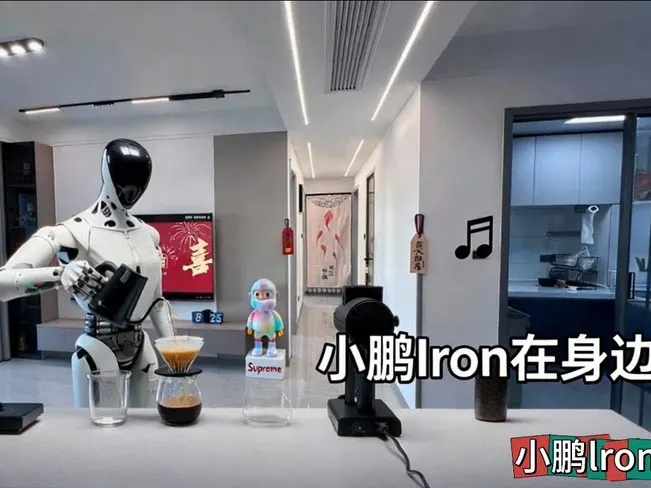 在这个温馨居家角落🏠,小鹏Iron机器人用科技的温度❤️