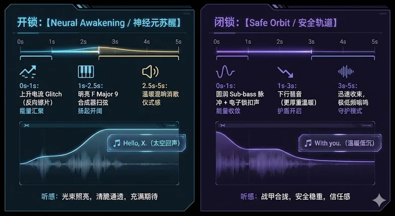 营造“能量收敛、护盾开启、安心离去”的稳重感。