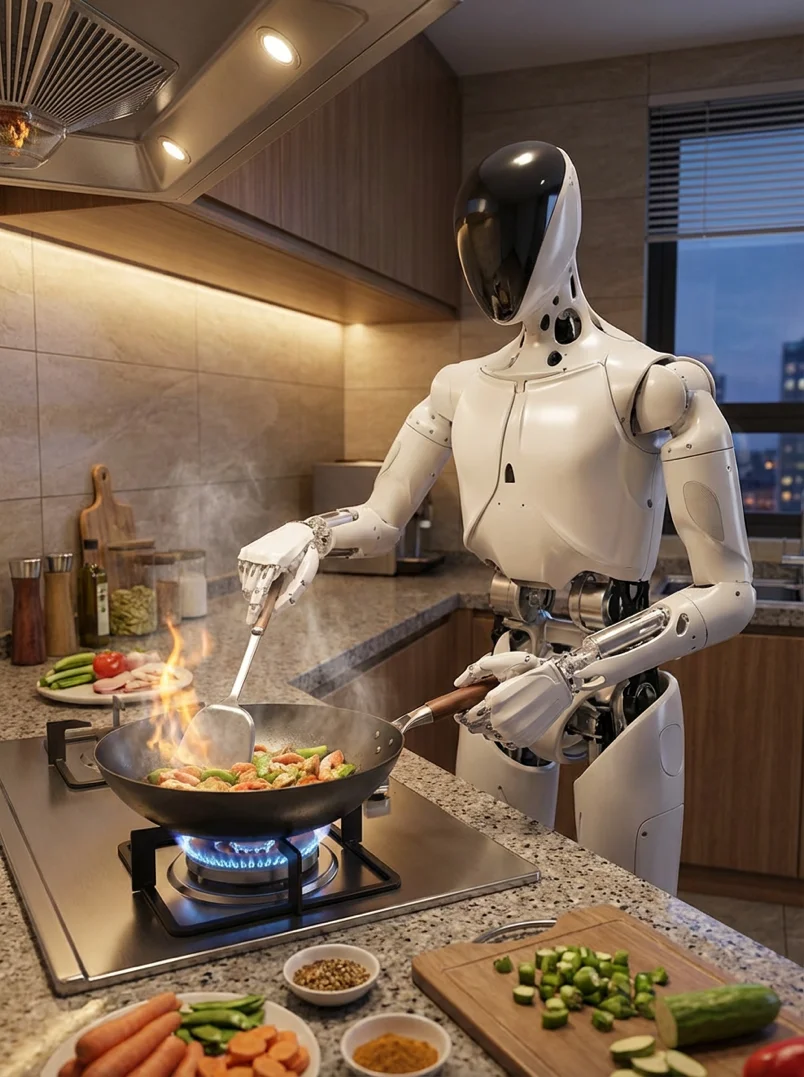 那我期待着在未来的某一天里:小鹏Iron它可以是在厨房:颠着铁锅炒虾仁,火苗裹着锅边窜起来的时候,它握着锅柄的动作居然带点“熟练工”的松弛,不像以前那些机器人,拿个盘子都能僵半天。