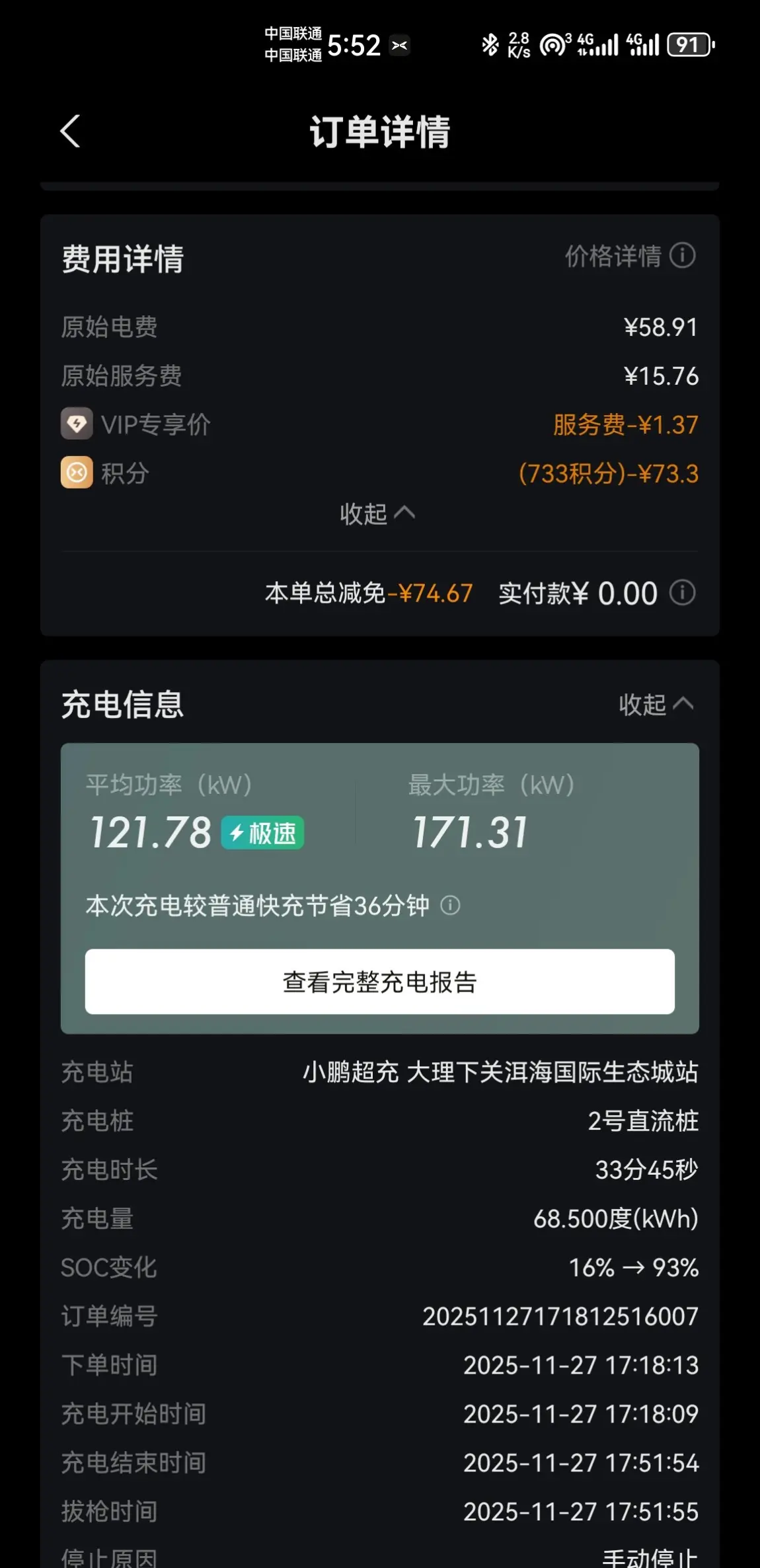 途中隧道前修路堵车将近一小时,不过下午5:00就到达了大理,找了小鹏充电站,半小时补能完毕