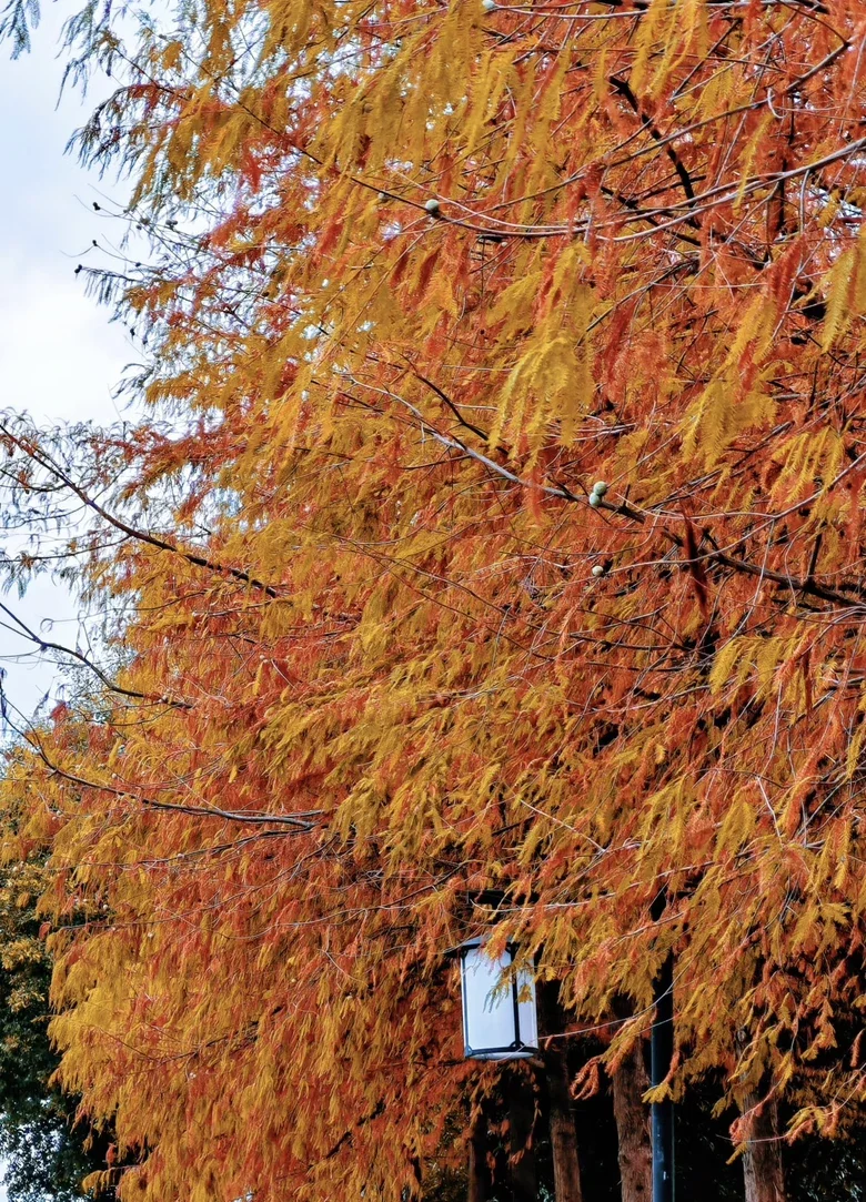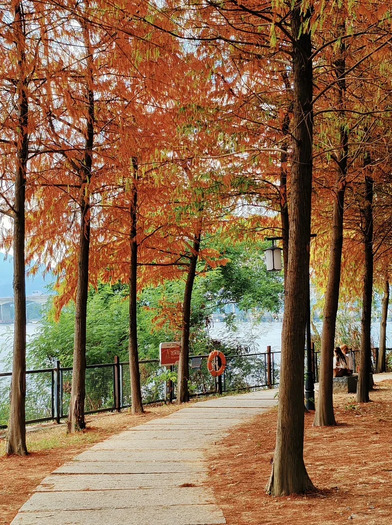 还有一次,朋友来我的城市旅游,我开着胖虎带他们打卡了家附近的乌龙江湿地公园!一大片秋日水杉林,风景如画!忍不住拍照记录!