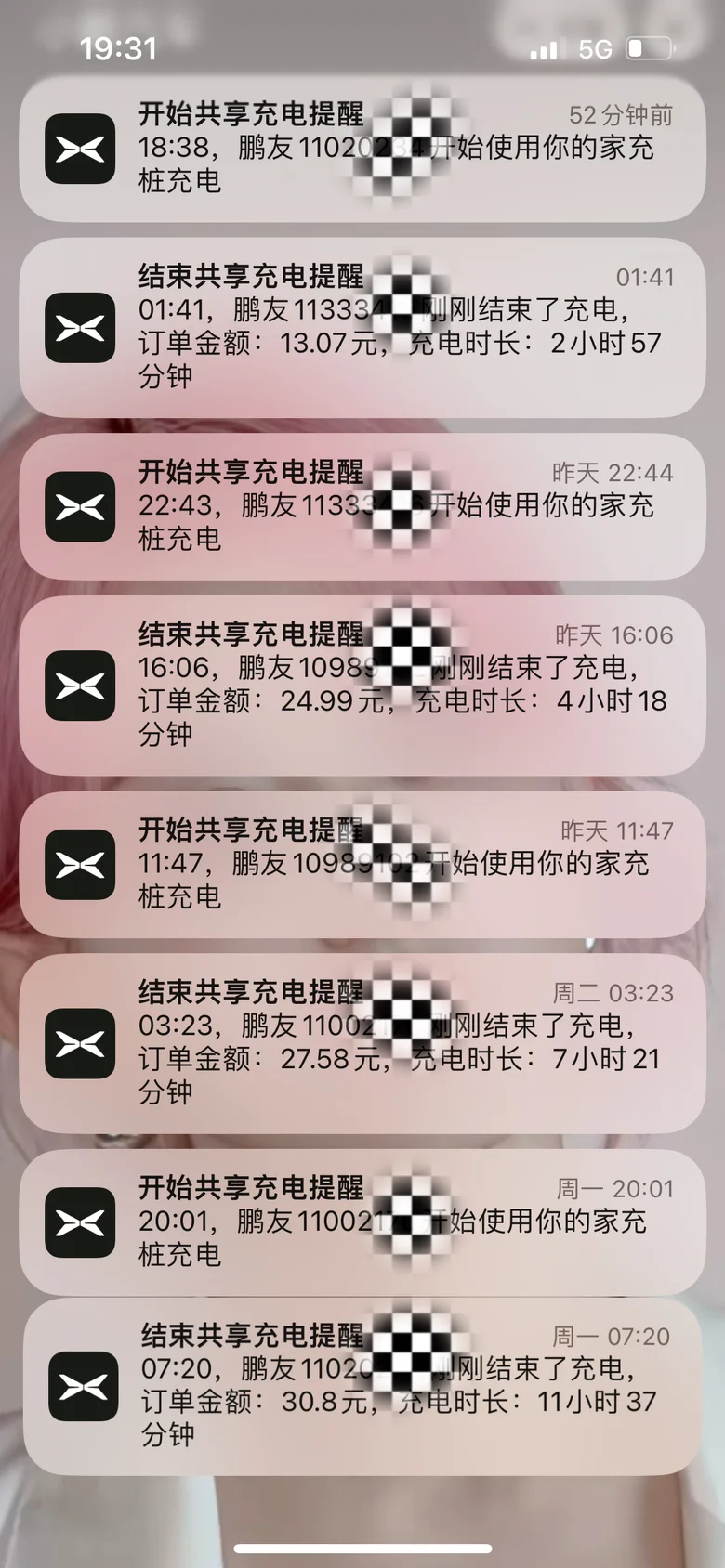 我们是一个新小区!而且还是分成小地块的!地下室都不互通!所以使用的人会比较少!但是当邻居们感谢你开通共享!方便他们!自己还有微薄收入非常开心!而且每次充电或者充电结束都会有提醒、真的非常方便!价格也可根据每个地方每个时段的不同来定!