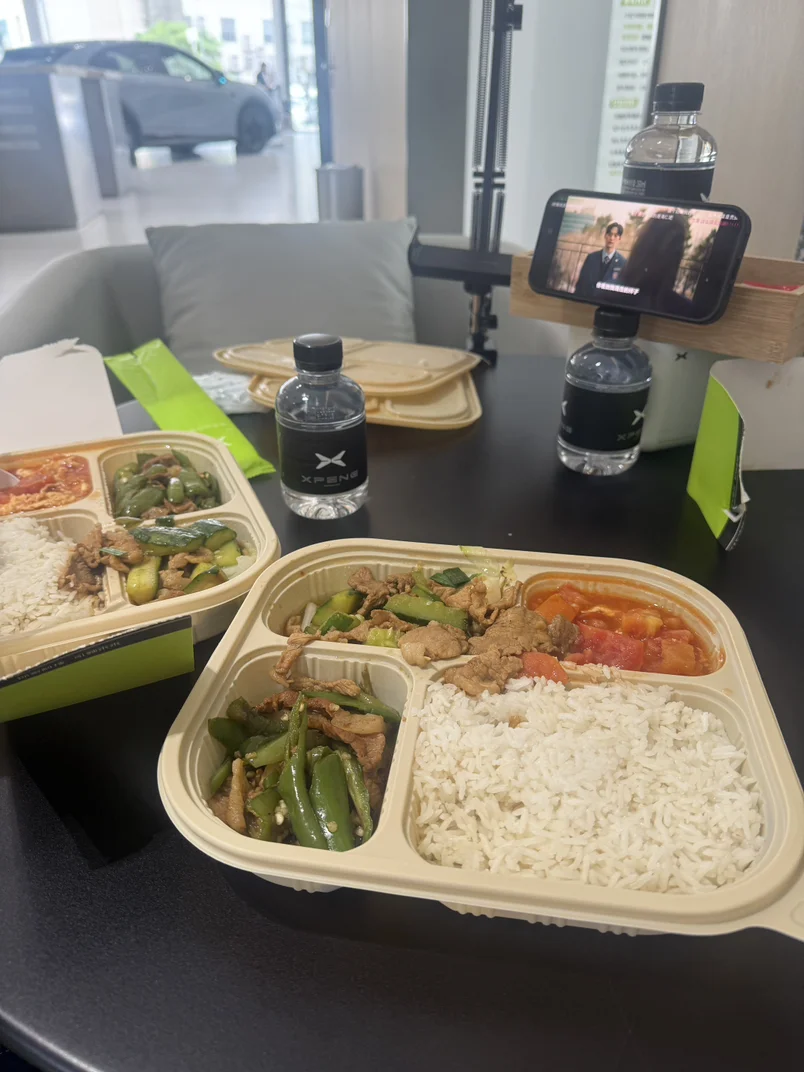 提车当天在交付中心的午餐,人生第一次提车给了小鹏