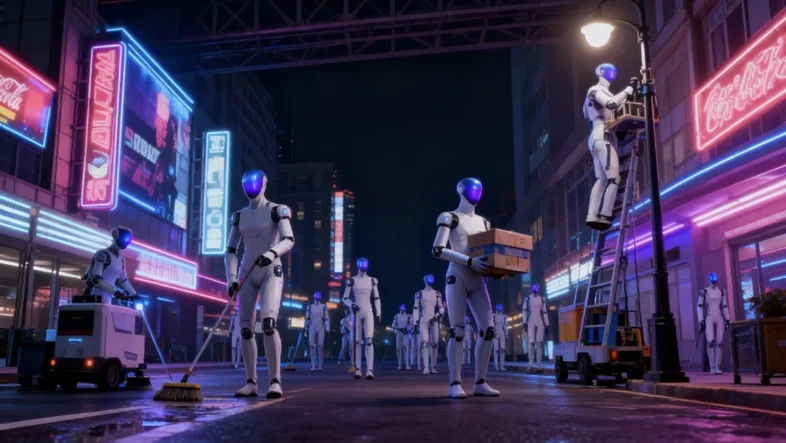 在夜晚悄然出动,自主进行城市清洁与设施维修,守护城市的整洁与高效运转。