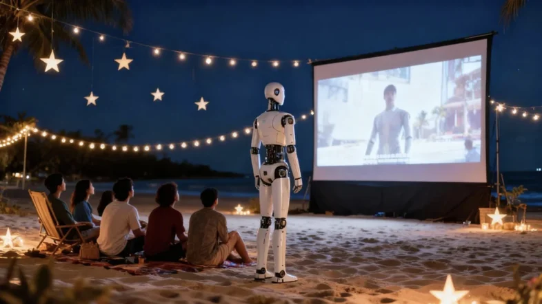 在沙滩上为众人投影巨幕电影,随时随地创造沉浸式娱乐体验。