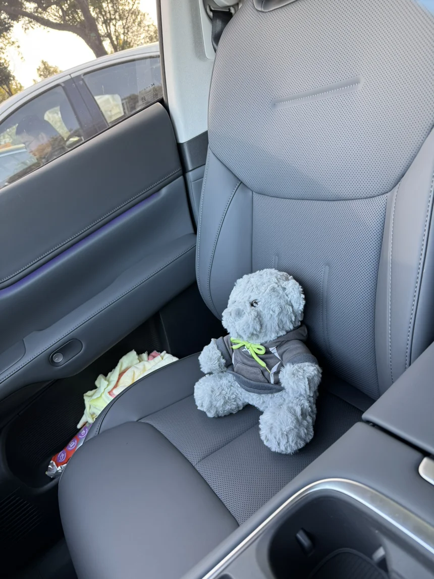每天最治愈的时刻,就是和副驾小鹏熊一起上下班~ 它乖乖系着安全带,圆脑袋随音乐轻轻晃,活脱脱我的专属“气氛组”。