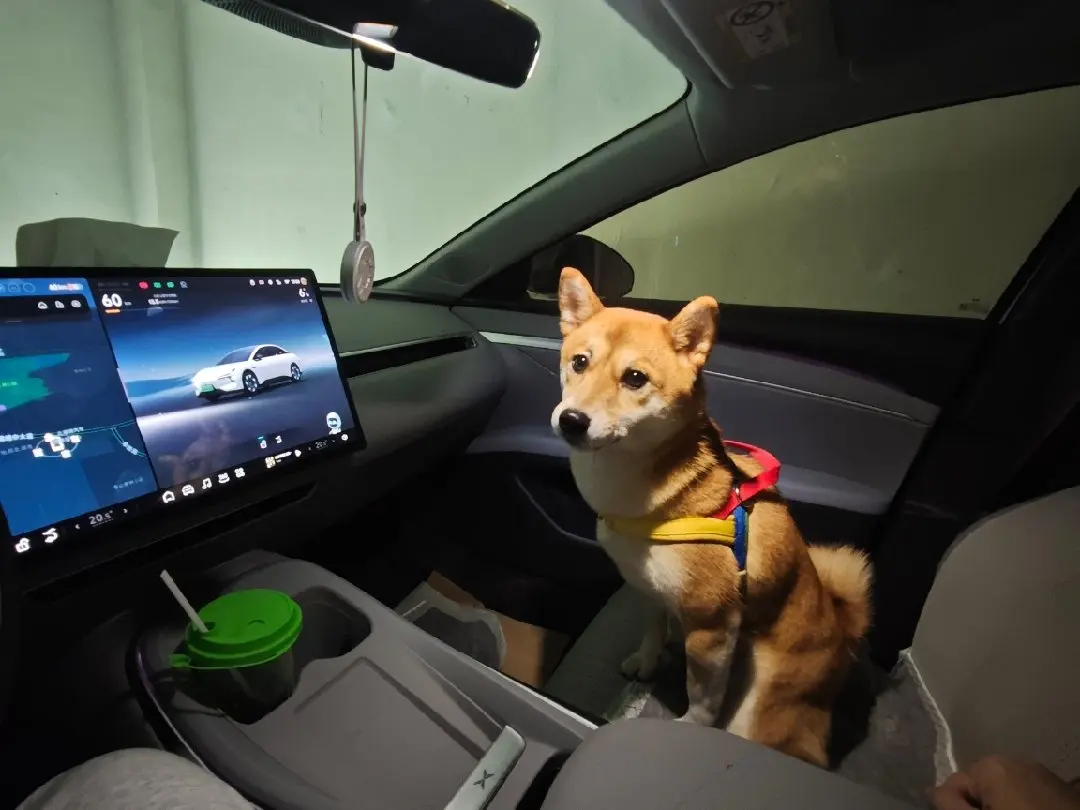 车子一上高速,开启ngp跑得特别稳。我正开着车,突然觉得旁边好安静,扭头一看,直接笑出来了——这家伙居然坐着睡着了!身子坐得直直的,但小脑袋跟小鸡啄米一样一点一点的,还打起了小呼噜。它大概觉得坐着睡才不辜负这个好座位吧。