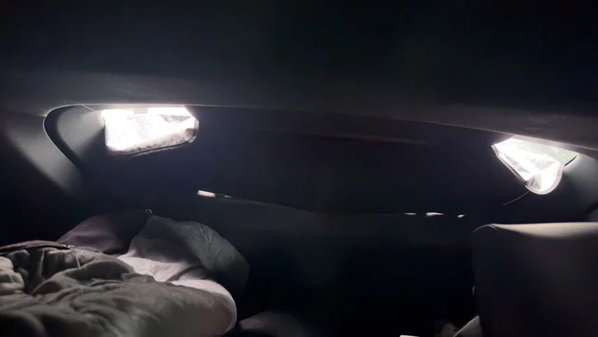 特别需要注意的,关闭大灯的通病,有时候关掉大灯后日行灯一直亮着,我的办法是车子启动下,挂上档轻轻开动下,然后挂P档后,再打开露营模式,这样外面的灯就全关了。(打开下双闪再关闭也行)