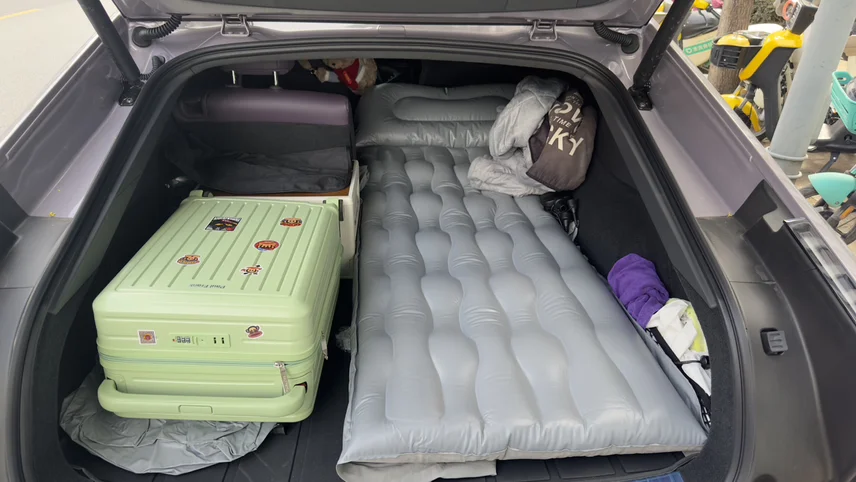 整体露营体验感受很可以,今晚感受下全铺,行李箱可以放到后排的地板上,空间可以放两个24寸的箱子。