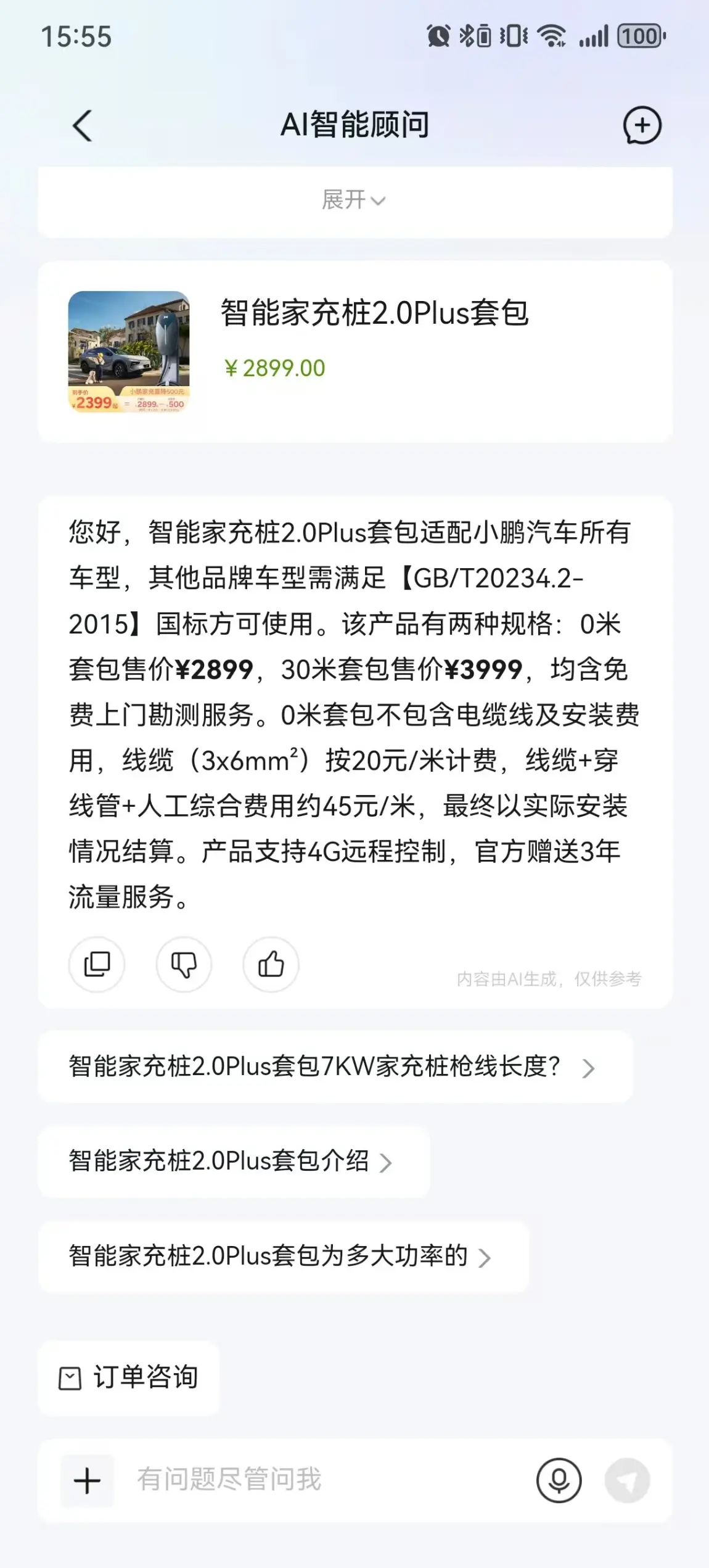 趁着商城有优惠活动,我果断下单了小鹏充电桩。令人惊喜的是,下单后仅一两个小时,安装人员就主动联系了我,并当天就完成了安装,效率非常高!
