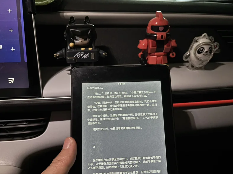 累了就拿起Kindle,享受专属阅读时刻,副驾的静谧空间,就是我的精神充电站~