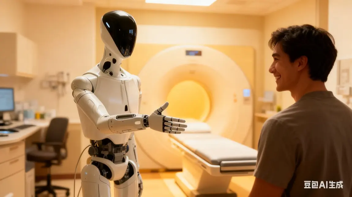 诊室门被轻轻推开,患者扶着门框略显迟疑,Iron的机械臂早已温柔上前,稳稳扶住对方的手臂,温和的语音缓缓流淌:“别急,检查流程很简单,我会一直陪着你”。看着患者脸上舒展的安心笑容,我忽然觉得,它的陪伴比语言更有力量,总能先一步接住那些藏在忐忑里的踟蹰。