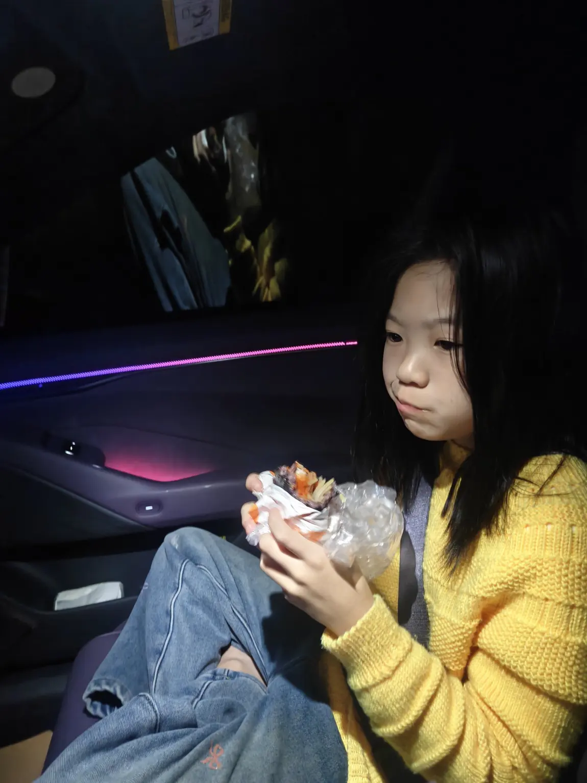 而我的副驾也很喜欢新P7,她可以一边吃饭团一边看小马宝莉哈哈😃