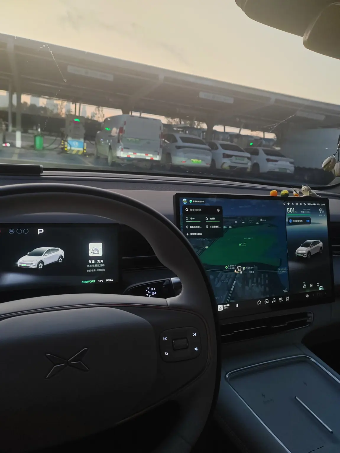 车窗外的世界,平静如水。喜欢自家的充电站,拔下充电枪,自动开启,插上即可充电,省心省力。