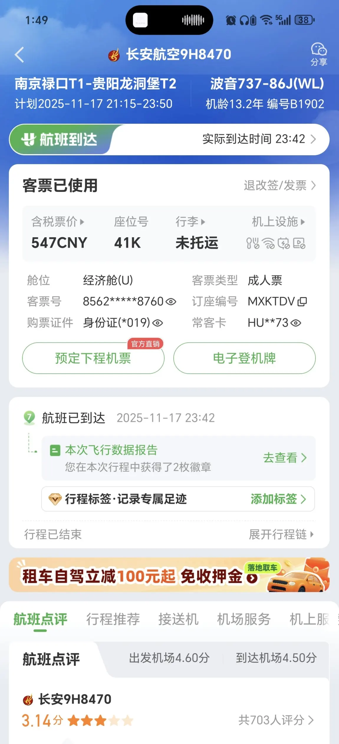 下定后,每天都要看车什么时候到店。终于某天晚上交付来电话,问什么时候能提车,必须第一时间,立马买了飞机票直飞贵阳龙洞堡机场。到机场是半夜12点,但哪里的小鹏销售都很给力,接机贵阳宵夜直接安排上。