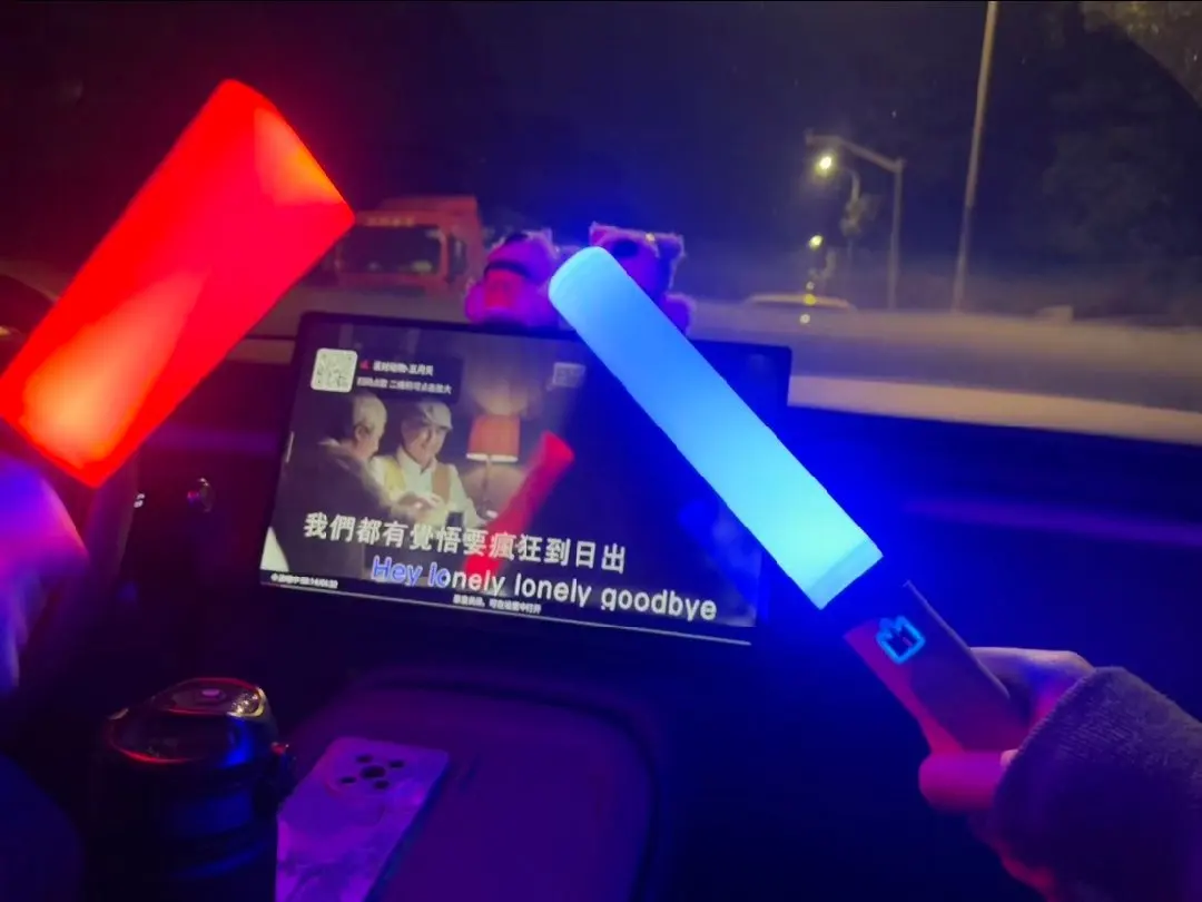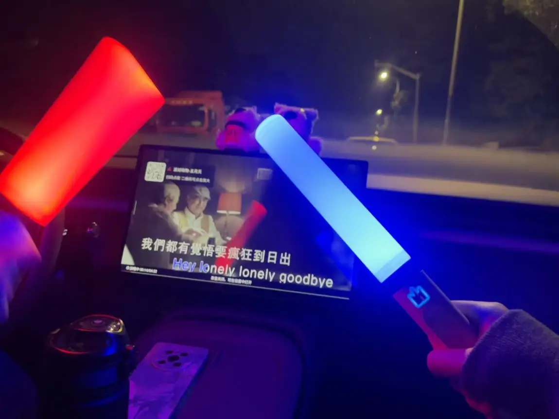 演唱会开始前一天,我和老婆在车上等人,就尝试了一下G7的唱k功能,没想到没有麦克风的效果也还挺好的。配合上氛围灯随音乐律动和荧光棒,直接变成小型live现场,提前预热。