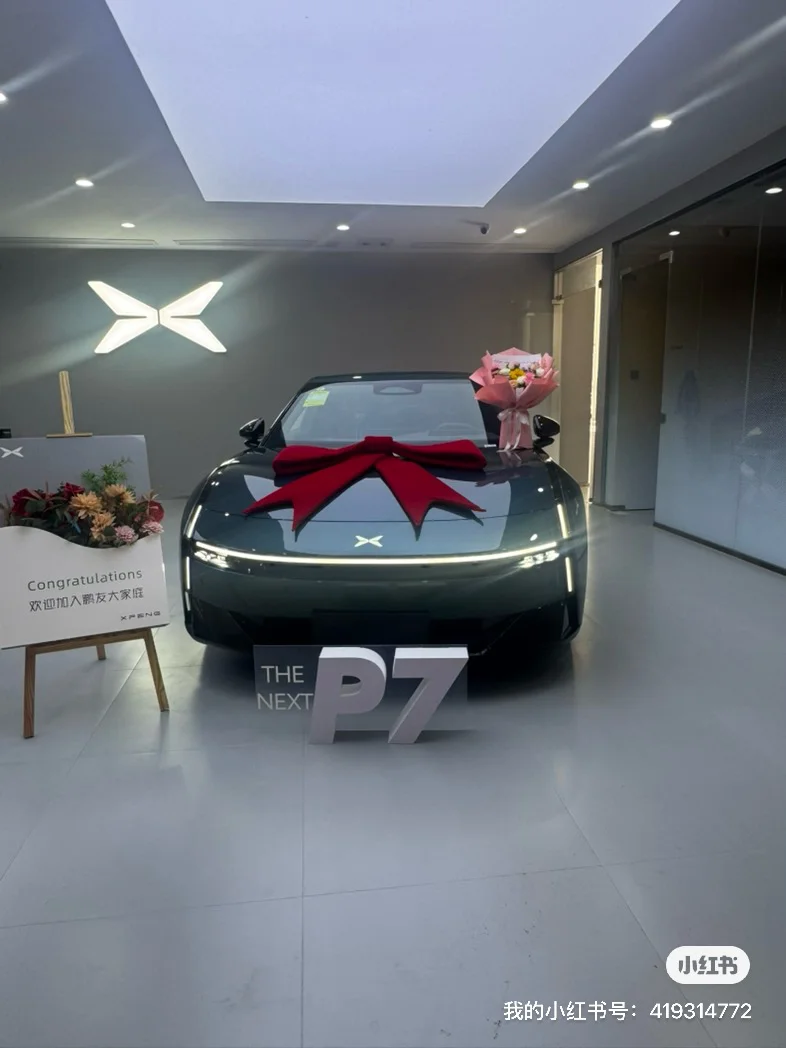 盼了半月,终于接到我的星瀚绿P7!交付中心的红花仪式感拉满,绕车验车,无框车门+贯穿光翼灯颜值戳心,漆面无瑕超满意。