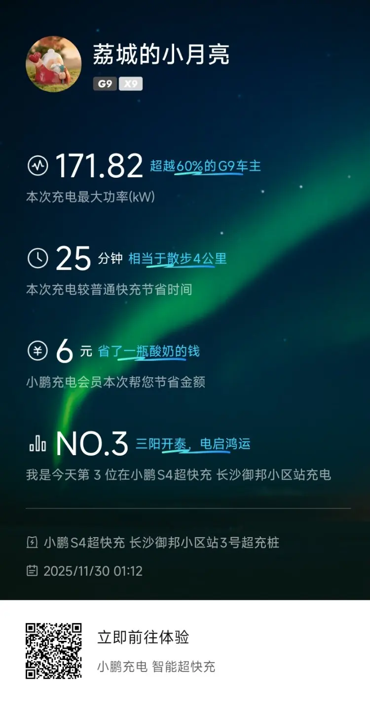 小鹏双十一推了一个800-70的电卡,还是非常划算的,而且正好有我这边的几个充电站,一次屯了3张,所以这个月基本上是在小鹏快充充的电,速度很快,而且开了免扫码,直接拔枪--自动开盖--插上自动充电,又快又狠,寒冷的冬天还是比较实用的功能☺️☺️☺️