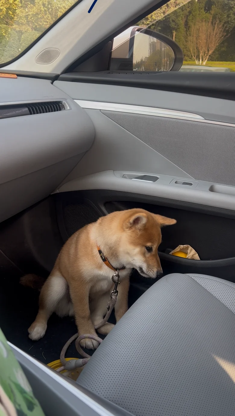 对我而言,小鹏的副驾从不是冰冷的座椅,而是我家毛孩子“蛋桑”的专属“移动小窝”。每次上车,它总会摇着尾巴跳进副驾,用小脑袋蹭蹭座椅上的专属软垫,再把毛绒玩具叼到脚边,乖乖坐好等待出发——这是属于我们俩的出行仪式感。