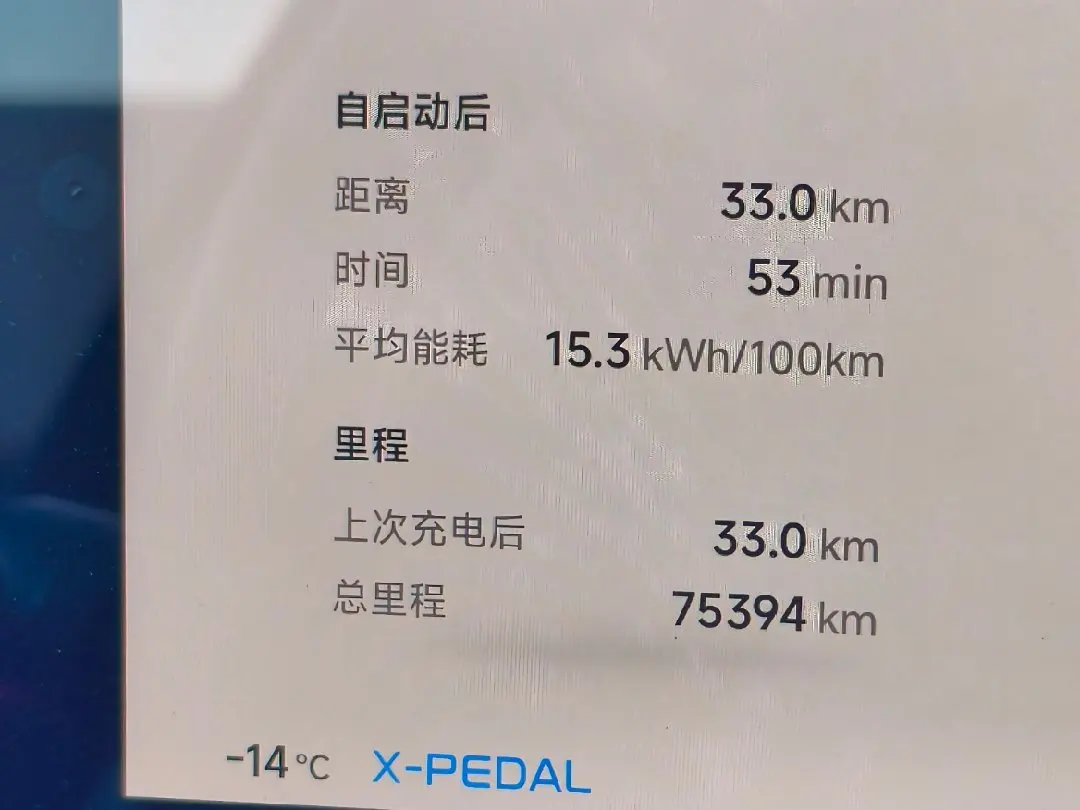 12月2日,东北零下14度,早上开了33公里,能耗15.3百公里,欧耶