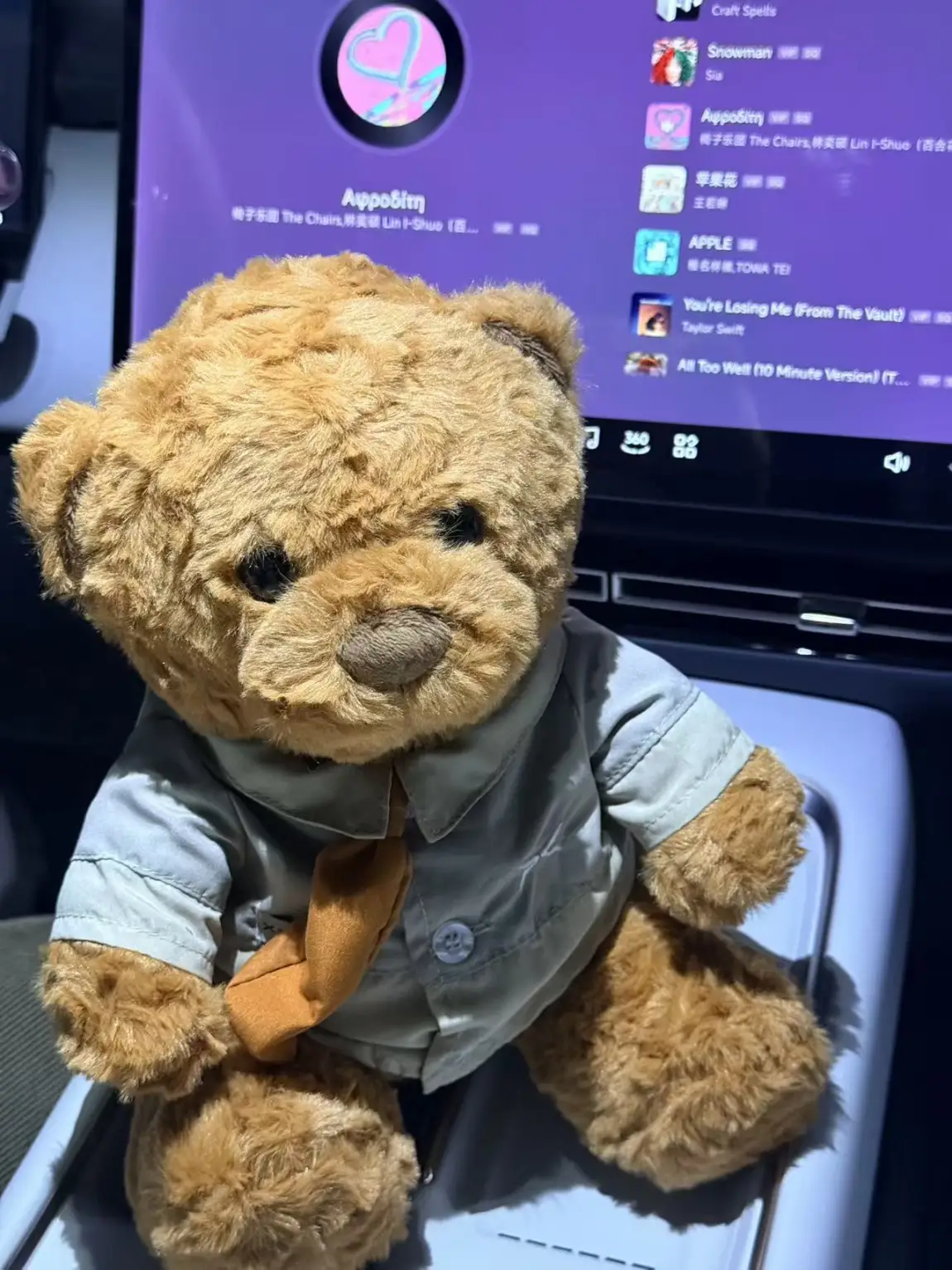 因为有现车,没几天就提车了,又要表扬小鹏的交接员了,我没有提前只会他,就已经把车洗好充着电了,跟我说差不多等我手续办完电就充满了。随车还送了小熊很可爱。