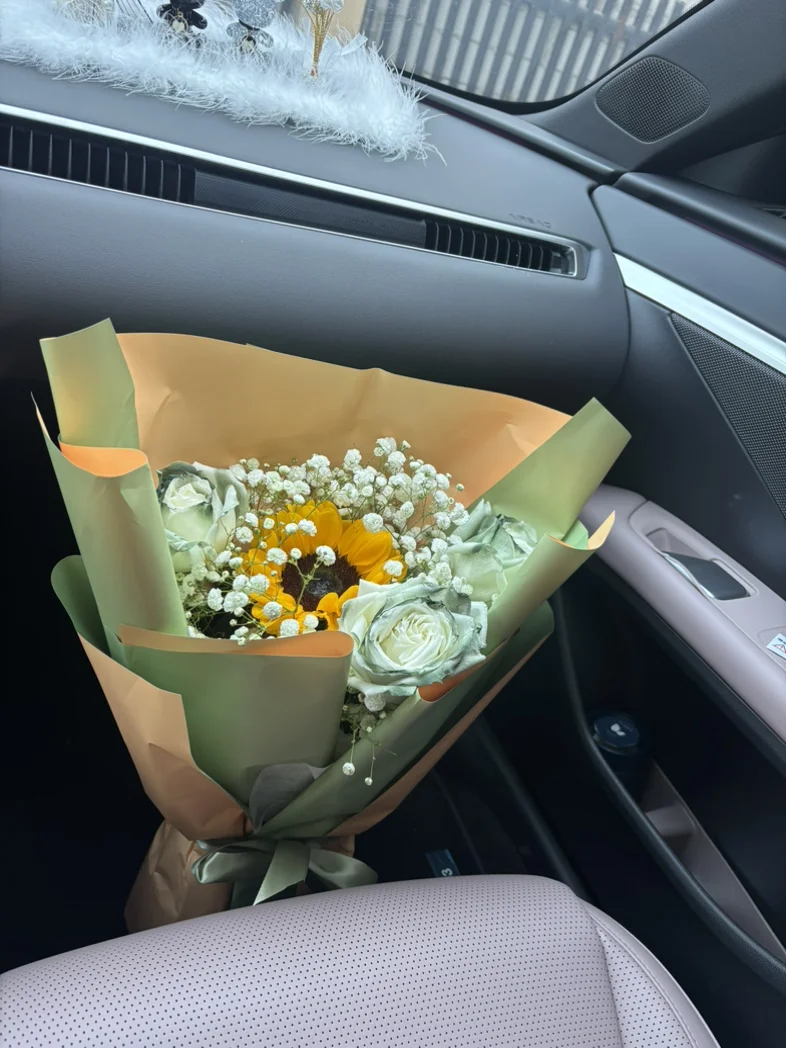 😍当然为了解锁我眼睛的疲劳,增加心情的美秒,有时候还会在副驾放上不同样的鲜花💐作陪喔: