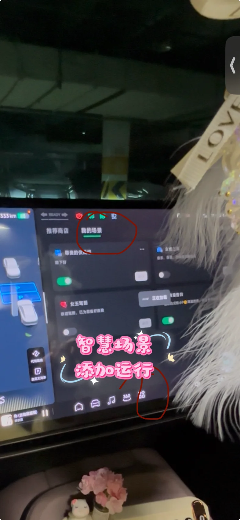 最后还给大家分享下小鹏M03的智慧场景,在中控屏下面点击4个小方块进入,可以看到本身自带很多场景,可添加运行,也可自定义自己想要的场景