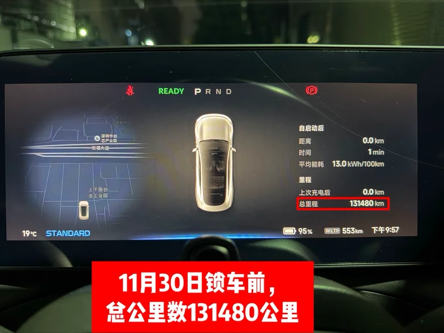 截至11月30日锁车,P7仪表盘显示的总公里数为131480公里,所以11月30日总公里数131480公里-11月2日总公里数129435公里=11月份行驶总公里数2045公里。