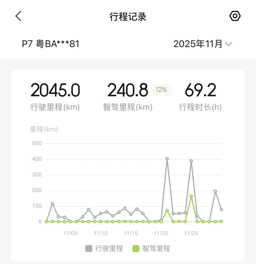 11月的用车经历,让我切实感受到小鹏P7的实用性与经济性。2045公里的行驶里程覆盖了日常通勤、周边游、跨市出行等多种场景。