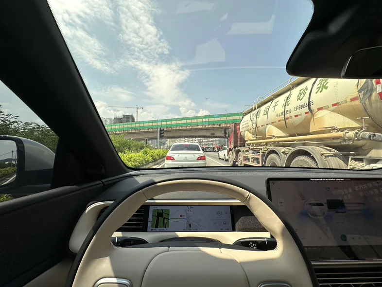 出发时,早高峰的车流还让我有些忐忑,可一上银百高速,小鹏G6的NGP智驾系统立刻接管了“重担”。设定好目的地银川龙谕酒庄,车辆便稳稳地保持在车道中央,遇到货车自动减速避让,前方有车辆加塞也能丝滑应对。