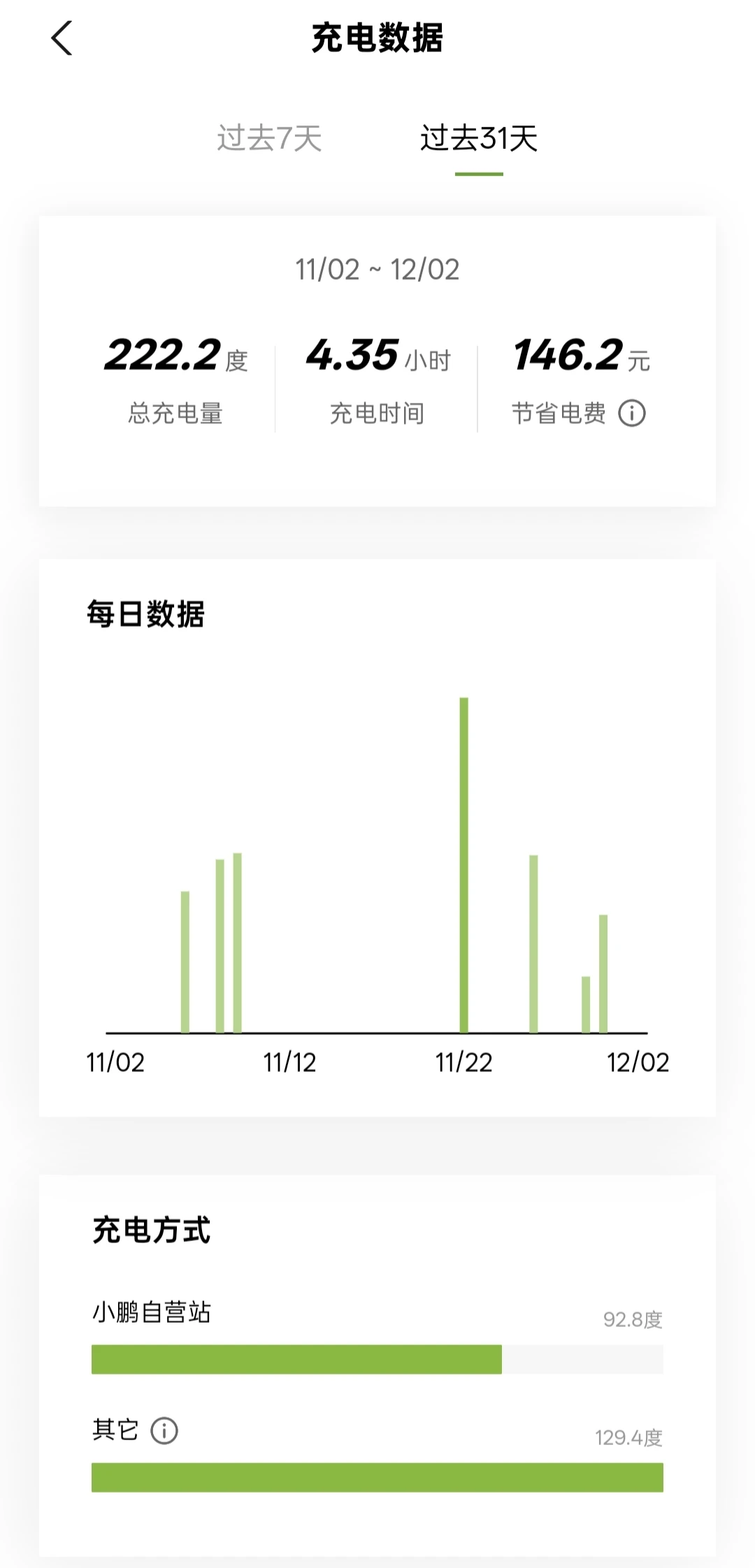 ✈️✈️从能耗图可以看出,11月份一共行驶了1199.4km,能耗平均控制在13.7上下,要知道我是任性驾驶的,完全不是黄金右脚,所以这个能耗非常的棒,与同类型的车相比节能效果显著,其低至13.7kWh/100km的能耗表现,在同级车型中处于领先地位,长续航能力让人在出行时倍感安心。打野充电合计花费146.2元,按照里程数算下来,划到0.13元/公里,相当的经济。