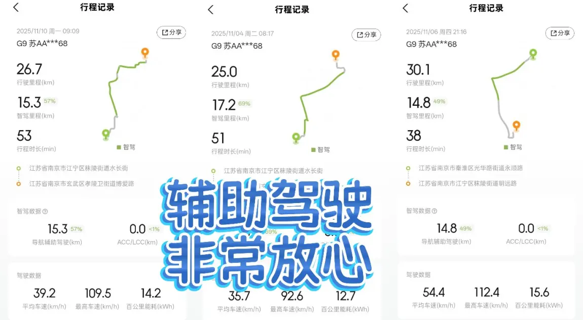 🚘🚘辅助驾驶方面,2024款G9搭配激光雷达,无论是高速、绕城、城区,用起来都游刃有余,更新了天玑5.8.5之后,面对一些复杂路况时,它的应变能力进一步提升。当临时接个电话或者回个微信,轻轻往下一拨,即可灵活处理一些棘手的事情。另外,我发现,NGP开启后,辅助驾驶的电耗控制比我自己开表现得要好不少,这一点太赞了!👍👍👍