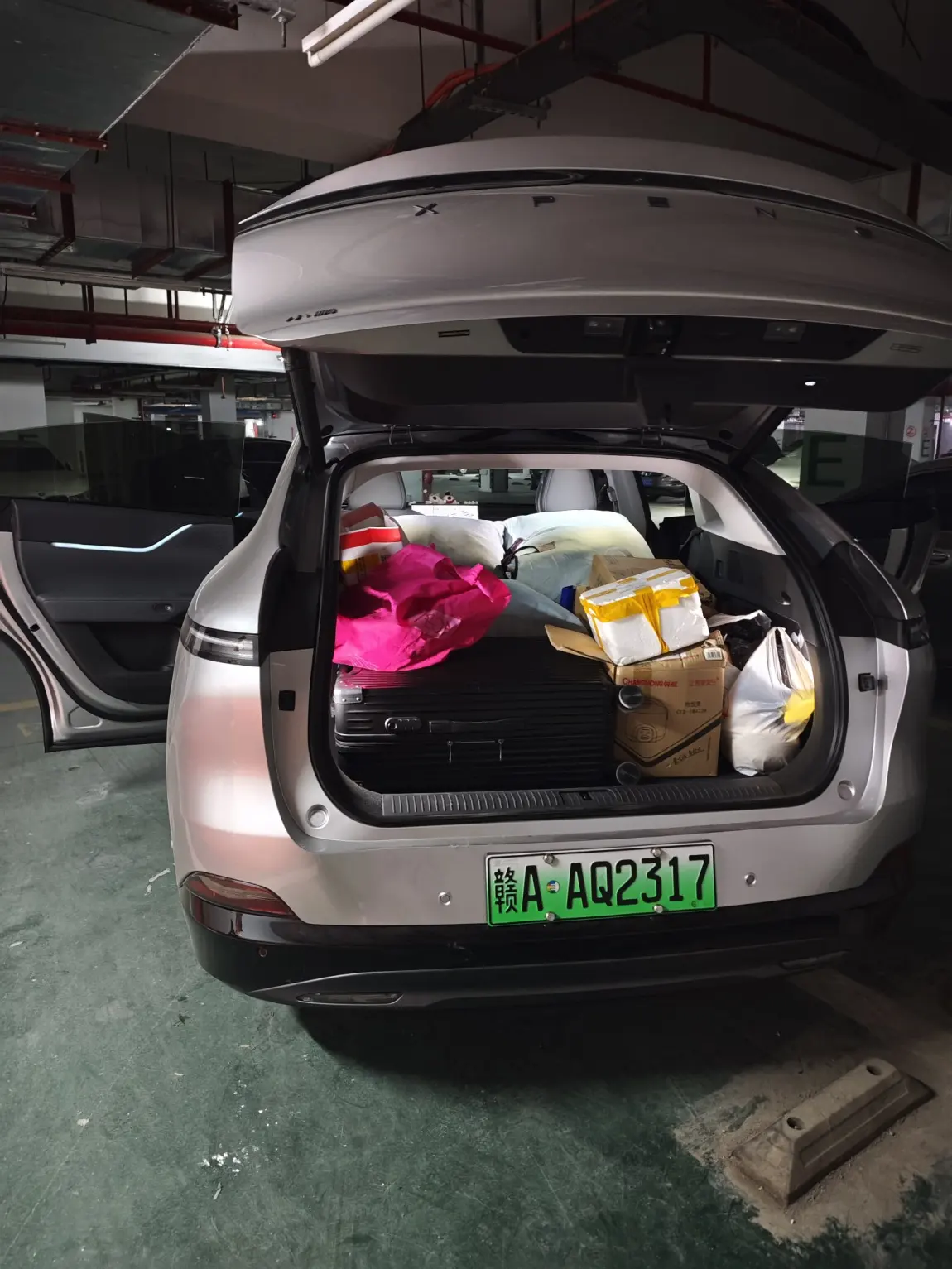 搬家最能考验装载能力,G6的表现很出色。把后排座椅完全放倒后,得到一个非常平整且巨大的空间。我一次性就装下了四个超大编织袋、好几个大号收纳箱、一个两米落地镜,以及好多零零散散的东西,掀背式后备箱让大件物品进出很方便,必须点赞。
