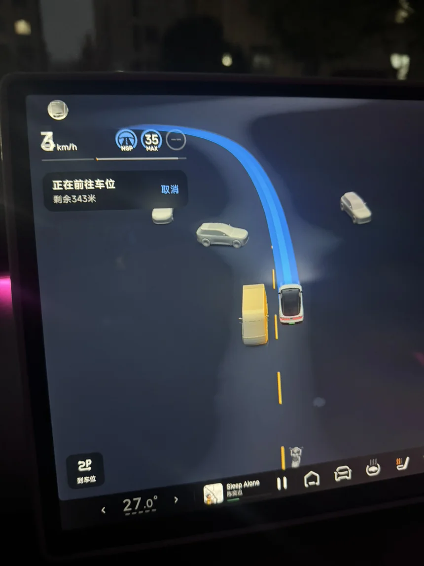 更了小鹏新系统5.8.5.8906,用着发现个超实用的功能,之前自己停过一次的小区车位,第二天开车到小区,车机大屏幕直接提示向下拨档位杆开NGP,能辅助自动开到车位里,当时真的挺惊讶,比之前泊车方便太多,不用自己费劲找角度调整,就算赶时间或者手里拎着东西,也能轻松停好车,科技感拉满还省劲儿。