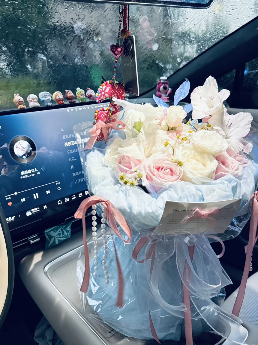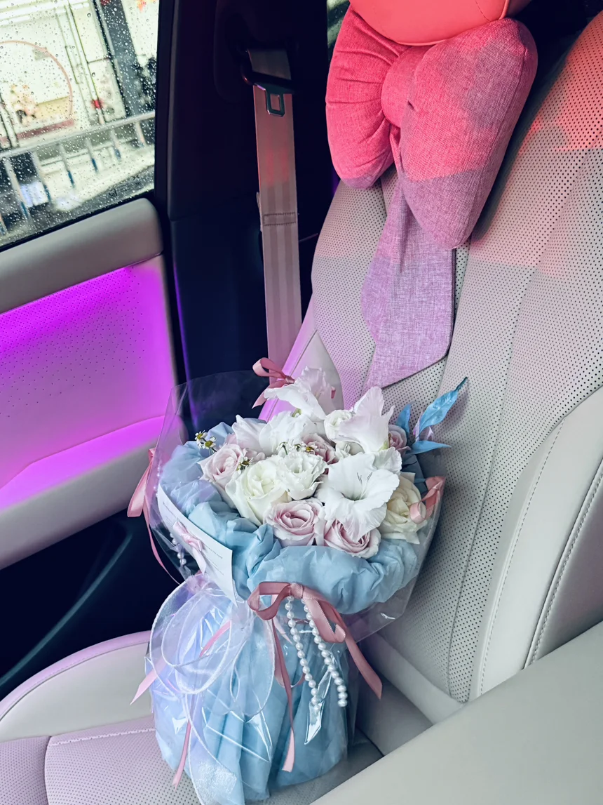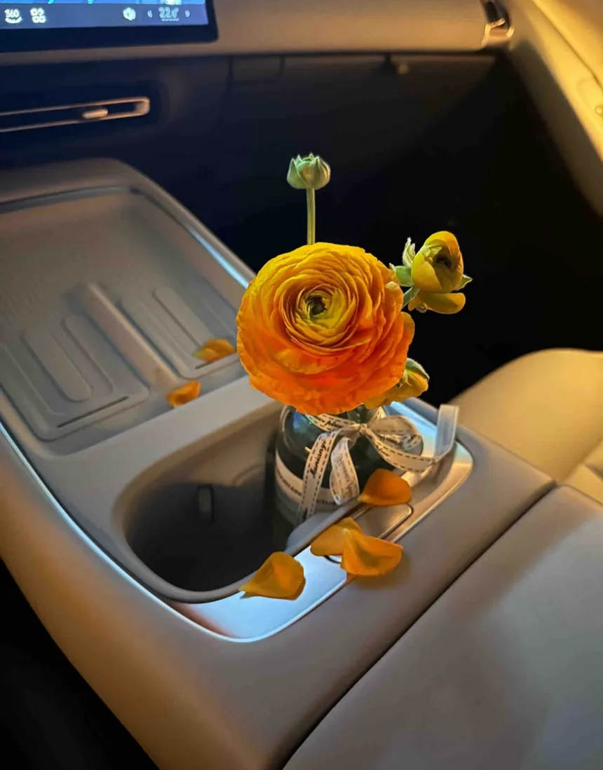 工作间隙的仪式感全靠鲜花撑起,中控台摆上一盆插着粉玫瑰的小巧花器,空调出风口挂着带细闪的小雏菊挂件,花瓣轻摇间满是温柔,再开启智能香氛,花香混着定制香调,清新又治愈。车内20扬声器音响能切换主驾专享模式,沉浸在立体音乐里隔绝外界干扰,累了抬头看2.1㎡全景天幕,阳光透过隔热防紫外线玻璃洒进来,伴着花香和咖啡香,原本枯燥的工作时光也变得舒缓自在,不管是临时处理工作还是户外轻办公,都能兼顾效率与浪漫。