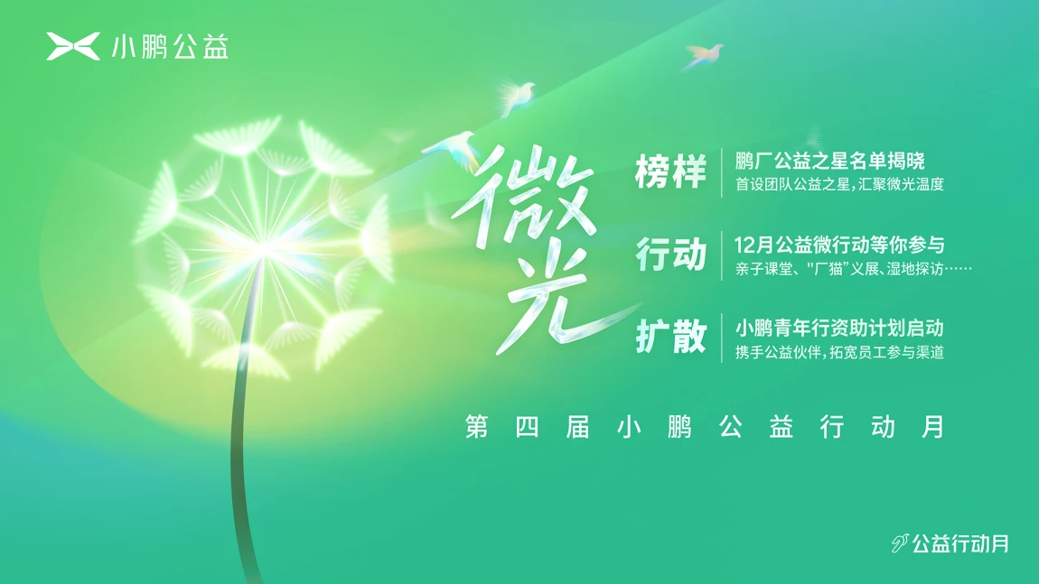 ✨在第四届小鹏公益行动月期间,小鹏汽车联合小鹏公益发起"小鹏青年行·微光计划",通过资助专业机构,为小鹏员工、车主以及公众搭建参与公益实践的平台,让每个人成为科技向善的推动者,共同驶向更美好的未来。