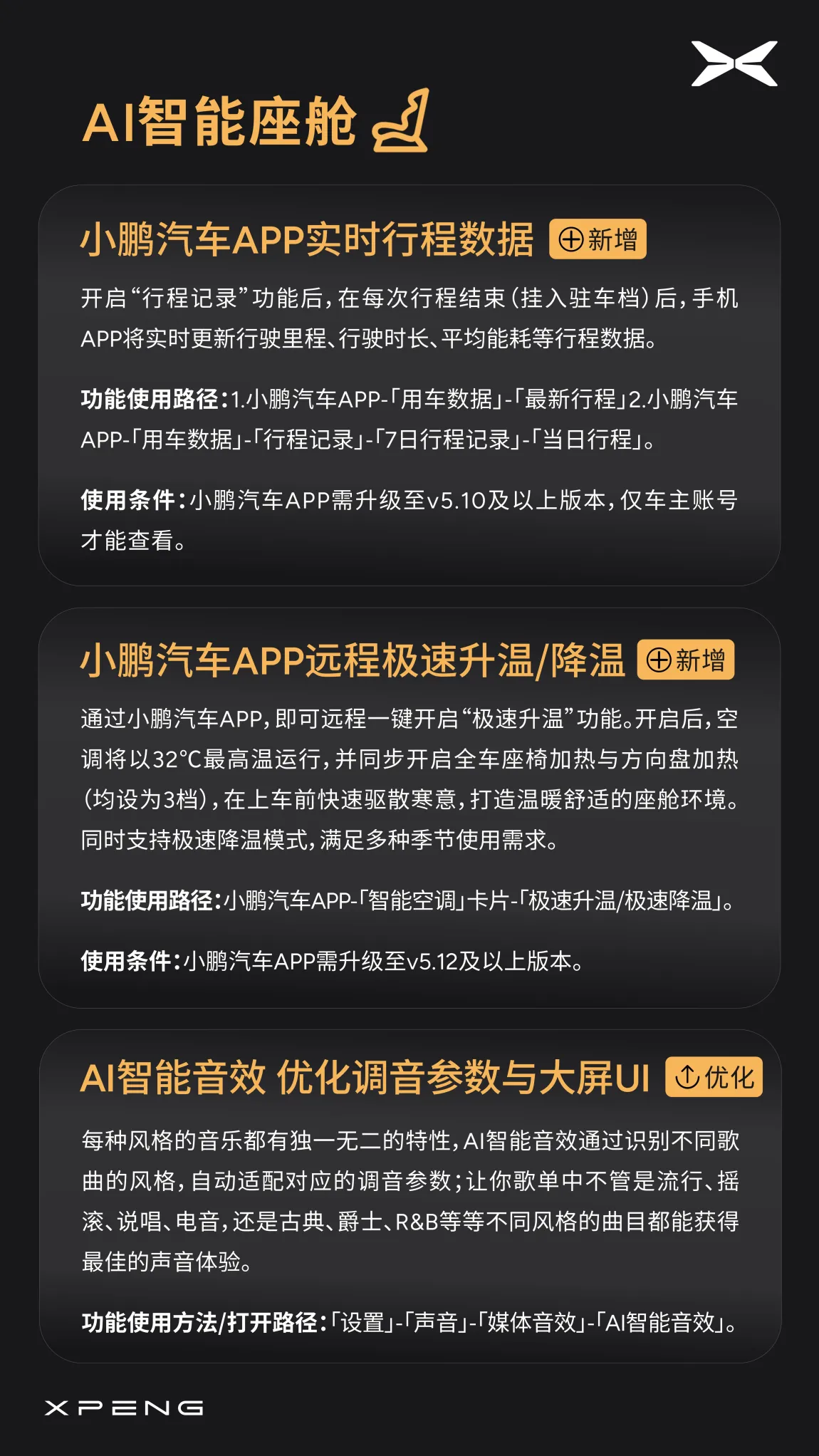 ✨ 超10项座舱、语音功能升级,天玑系统累计升级已超350项,将持续为鹏友们带来更好体验!