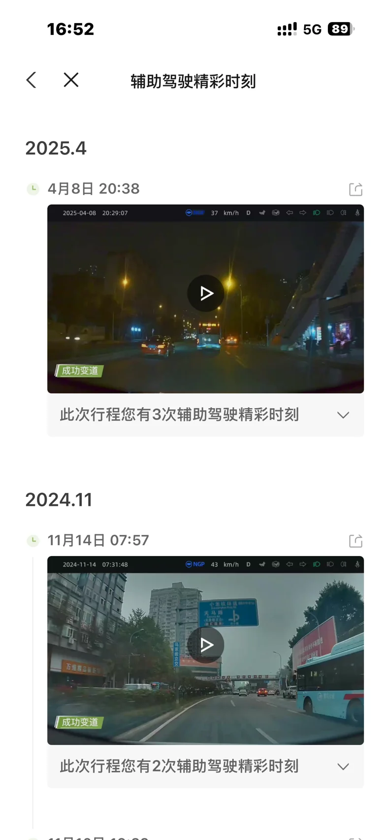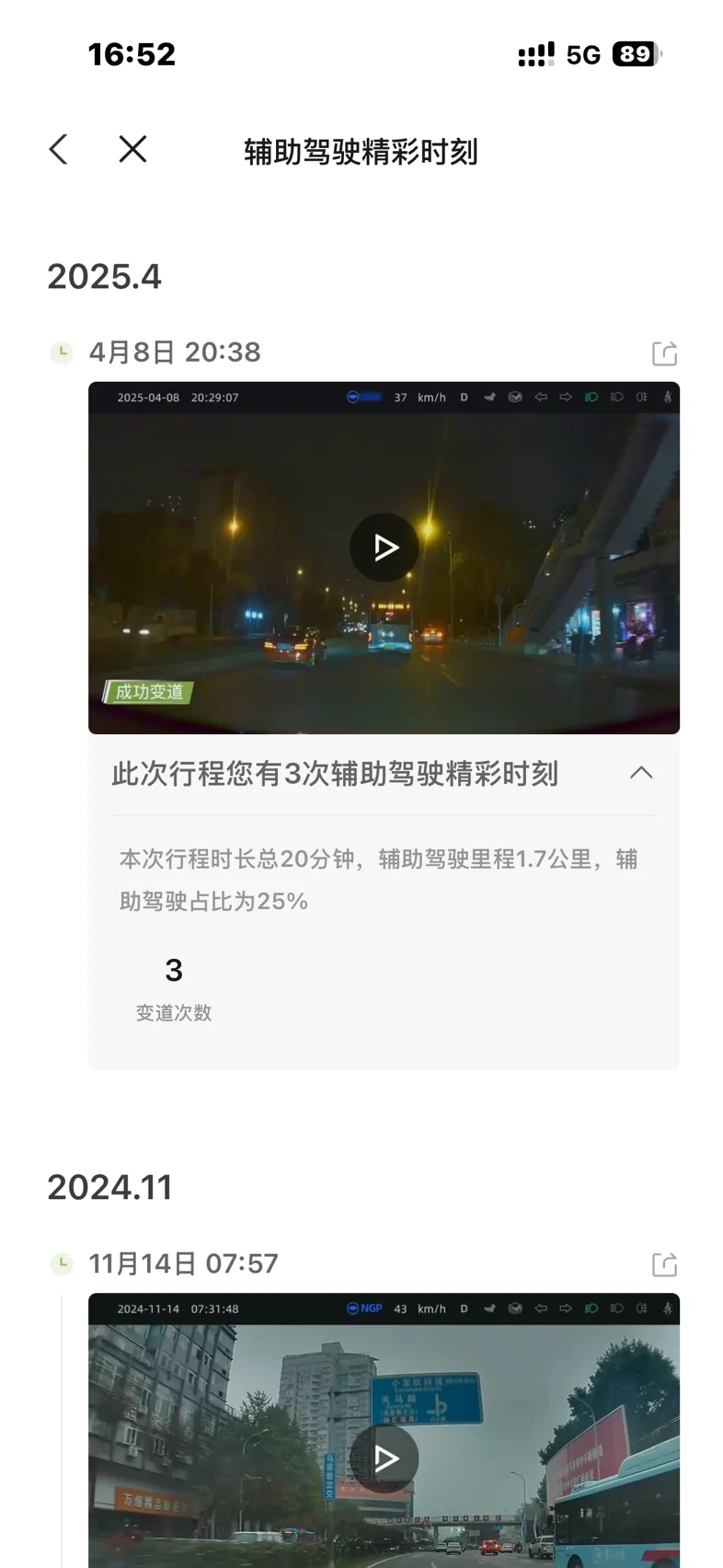 翻到“辅助驾驶精彩时刻”,还能看到4月8日那晚在重庆的成功变道,以及11月清晨避开早高峰大巴的机灵——这些被系统记录下来的“小高光”,其实都是日常里它给我的“小惊喜”。