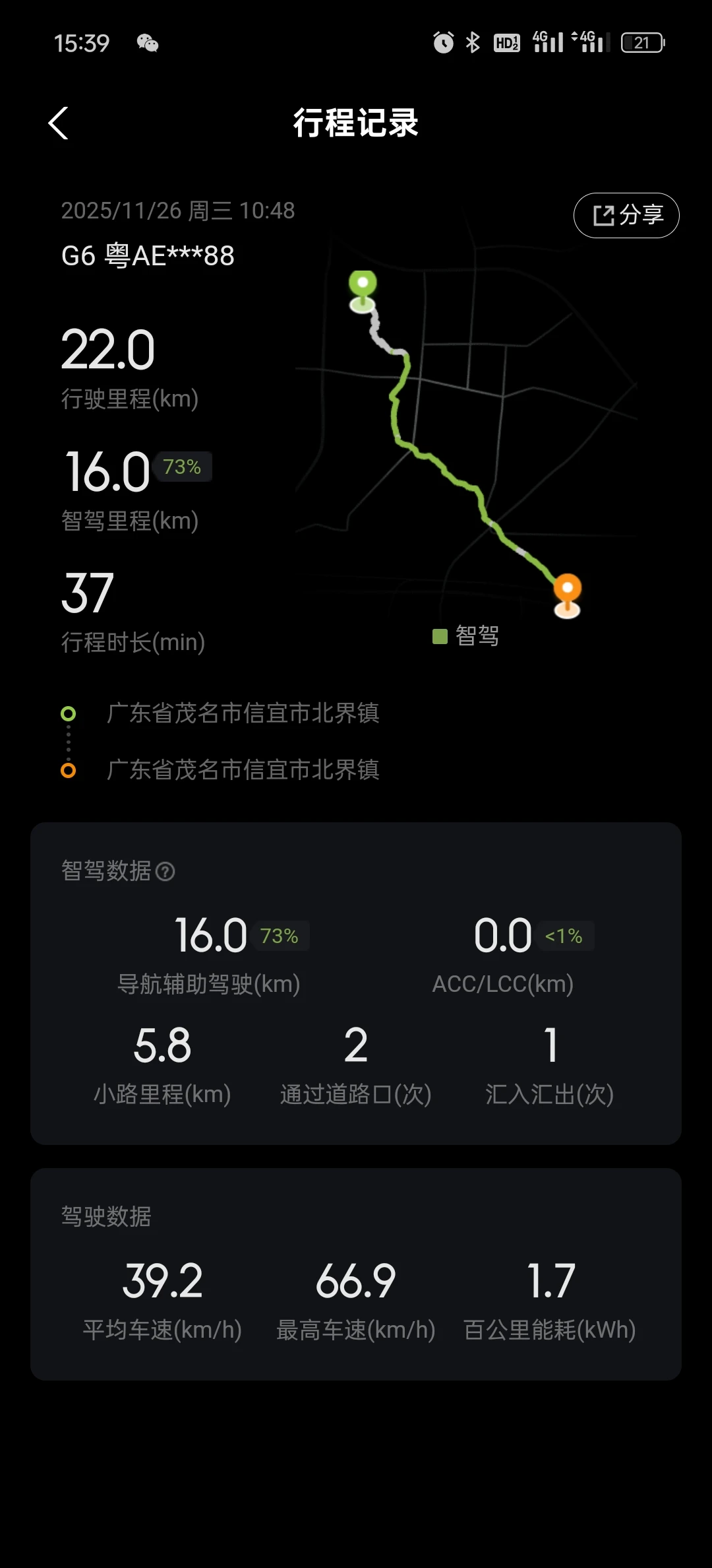 能耗依然稳定,中途在小鹏充电站补电十分顺畅,喝杯咖啡的时间,能量已悄然满格。
