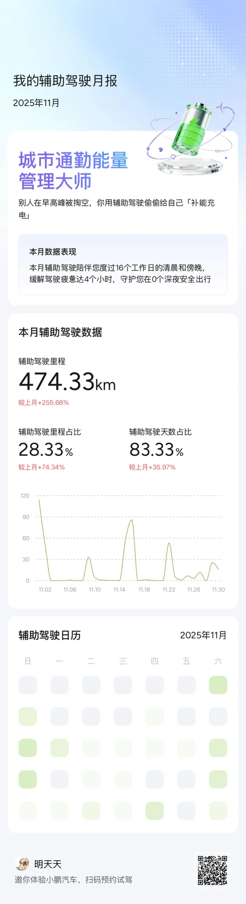 10月提车后,11月正式与小鹏G6深度磨合,这段时光让我彻底爱上了这款智能座驾。