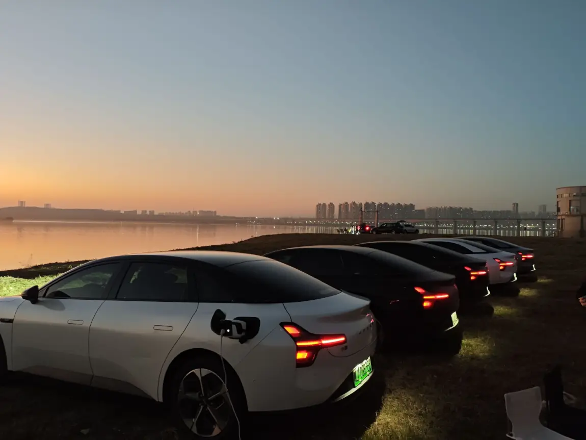 从后备箱掏出小鹏保温箱里的鲜菜,外放电接口一插,火锅的热气就和江雾缠在了一起。
